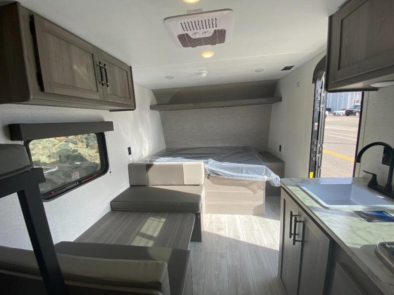 Open your horizons with the Hideout Sport Single Axle travel trailers by Keystone. They are compact, convenient, and lightweight; everything you're looking for in an RV! Each model features an aluminum exterior, tinted safety glass windows, and a Super Flex TPO roof membrane for added durability. The interior includes blackout night shades for added privacy and real wood doors and drawers that will give a more at-home touch. The Girard tankless water heater is a feature you won't want to camp without, and the LED lighting will keep your space bright and open!