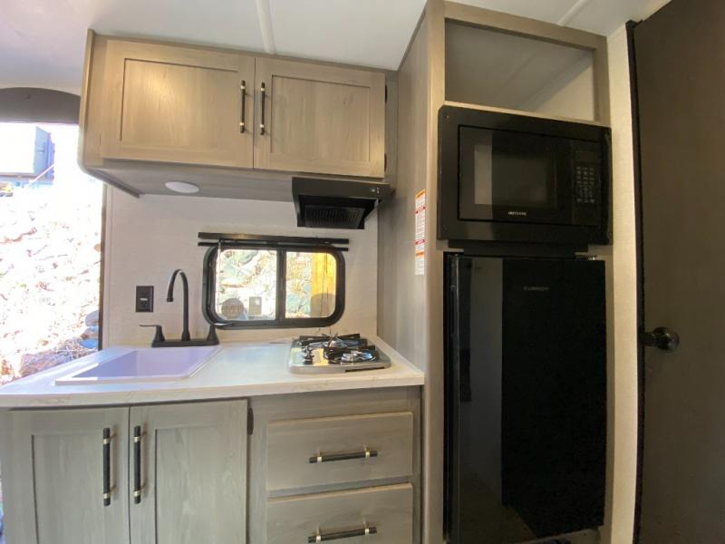 Open your horizons with the Hideout Sport Single Axle travel trailers by Keystone. They are compact, convenient, and lightweight; everything you're looking for in an RV! Each model features an aluminum exterior, tinted safety glass windows, and a Super Flex TPO roof membrane for added durability. The interior includes blackout night shades for added privacy and solid wood doors and drawers that will give a more at-home touch. The Girard tankless water heater is a feature you won't want to camp without, and the LED lighting will keep your space bright and open!