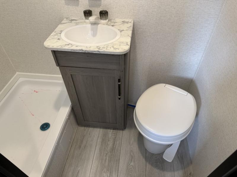 This trailer will fit perfectly for a group of five or less thanks to all the sleeping space! The owners will have a queen-size bed, and others can choose between the rear corner bunk beds or the booth dinette once set up for bedtime. There is a full bathroom for convenience when changing and getting cleaned up, a galley kitchen with a two burner cooktop plus a 3.3 cu. ft. refrigerator for the cold items. And you can stow your larger camping items in the exterior pass-through compartment.