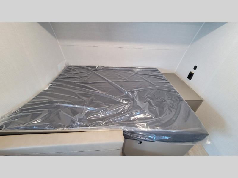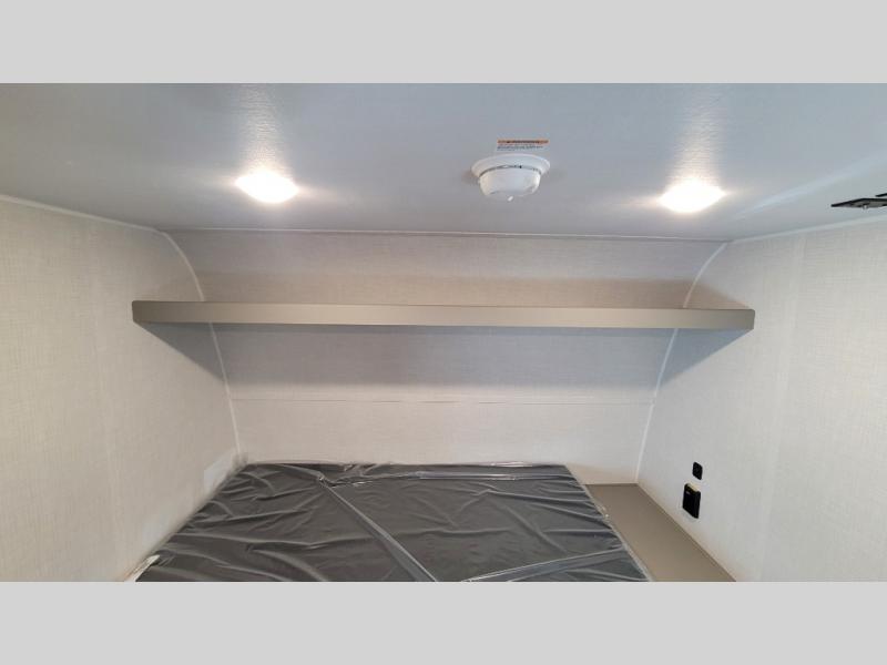 This trailer will fit perfectly for a group of five or less thanks to all the sleeping space! The owners will have a queen-size bed, and others can choose between the rear corner bunk beds or the booth dinette once set up for bedtime. There is a full bathroom for convenience when changing and getting cleaned up, a galley kitchen with a two burner cooktop plus a 3.3 cu. ft. refrigerator for the cold items. And you can stow your larger camping items in the exterior pass-through compartment.