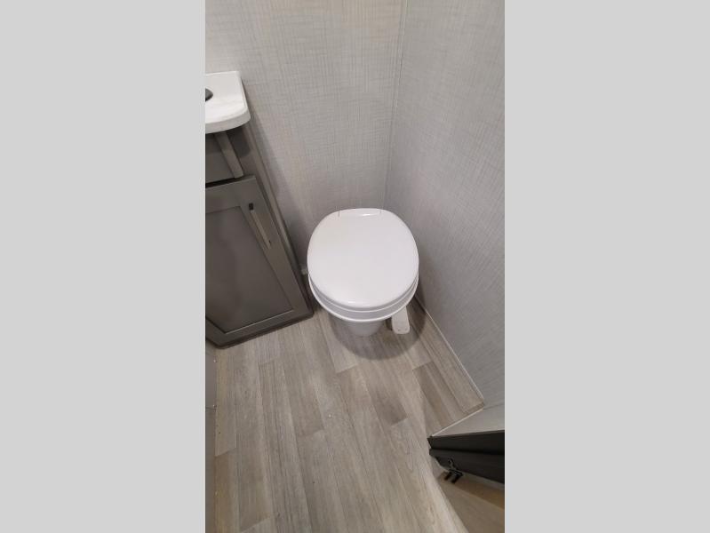 This trailer will fit perfectly for a group of five or less thanks to all the sleeping space! The owners will have a queen-size bed, and others can choose between the rear corner bunk beds or the booth dinette once set up for bedtime. There is a full bathroom for convenience when changing and getting cleaned up, a galley kitchen with a two burner cooktop plus a 3.3 cu. ft. refrigerator for the cold items. And you can stow your larger camping items in the exterior pass-through compartment.