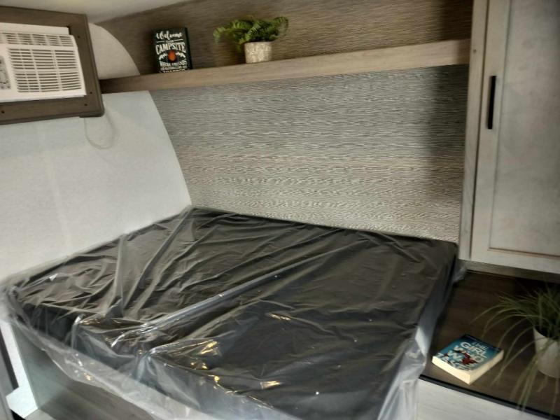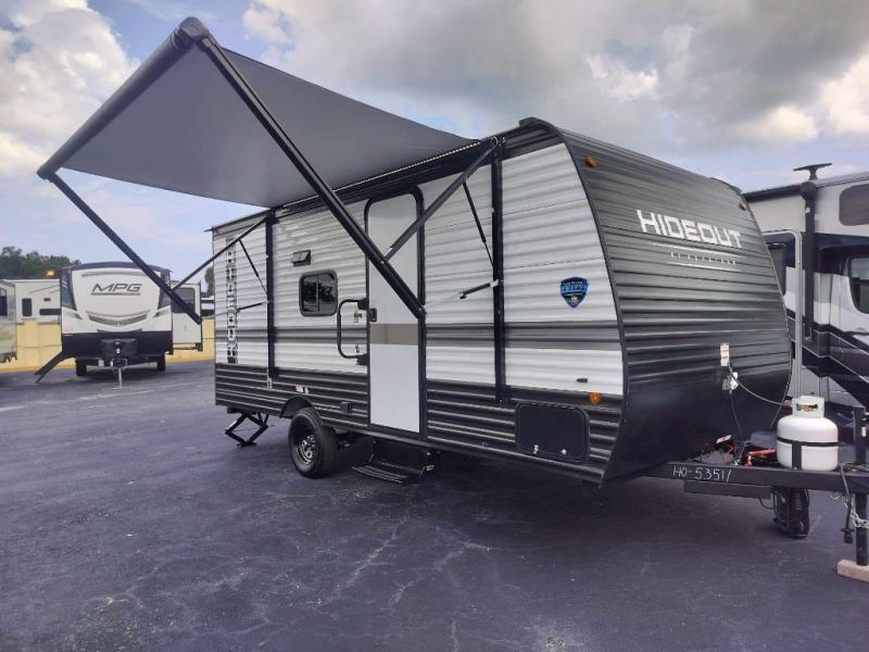 Open your horizons with the Hideout Sport Single Axle travel trailers by Keystone. They are compact, convenient, and lightweight; everything you're looking for in an RV! Each model features an aluminum exterior, tinted safety glass windows, and an I-beam frame with stamped steel cross-members and outriggers for added support. The interior includes blackout night shades for added privacy and real wood doors and drawers that will give a more at-home touch. The Girard tankless water heater is a feature you won't want to camp without, and the LED lighting will keep your space bright and open!