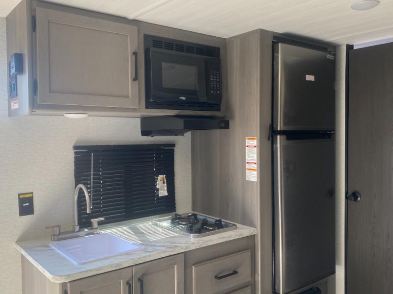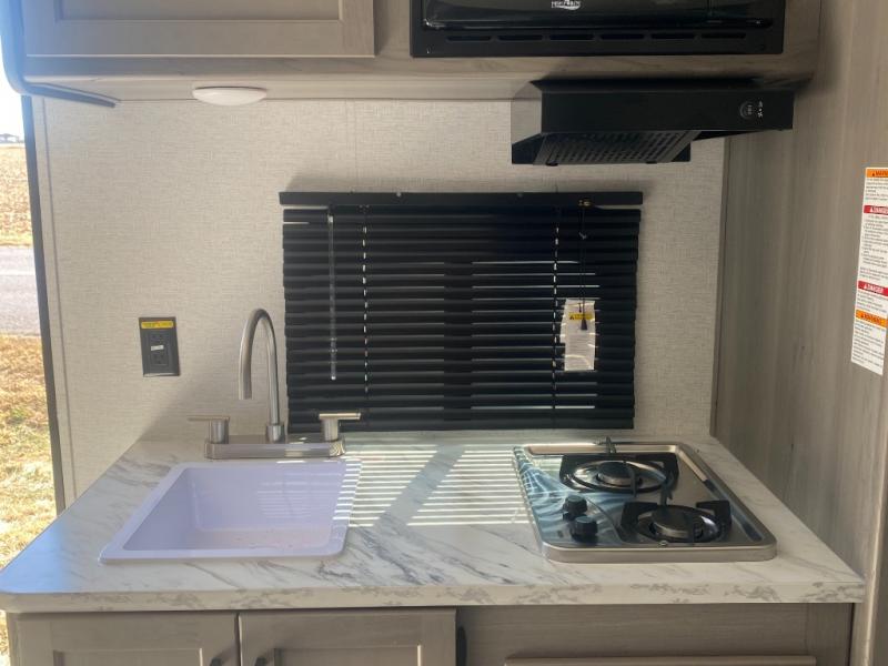 Open your horizons with the Hideout Sport Single Axle travel trailers by Keystone. They are compact, convenient, and lightweight; everything you're looking for in an RV! Each model features an aluminum exterior, tinted safety glass windows, and a Super Flex TPO roof membrane for added durability. The interior includes blackout night shades for added privacy and real wood doors and drawers that will give a more at-home touch. The Girard tankless water heater is a feature you won't want to camp without, and the LED lighting will keep your space bright and open!