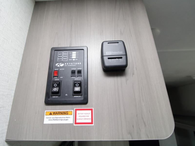 Extend your living space with the 10' power awning, perfect for relaxing outdoors in any weather. Easily access camping chairs, gear, and more with the pass-through storage compartment—a must-have for keeping your travel essentials within reach.