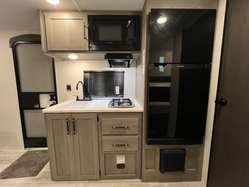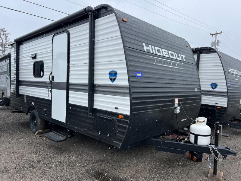 Open your horizons with the Hideout Sport Single Axle travel trailers by Keystone. They are compact, convenient, and lightweight; everything you're looking for in an RV! Each model features an aluminum exterior, tinted safety glass windows, and a Super Flex TPO roof membrane for added durability. The interior includes blackout night shades for added privacy and real wood doors and drawers that will give a more at-home touch. The Girard tankless water heater is a feature you won't want to camp without, and the LED lighting will keep your space bright and open!