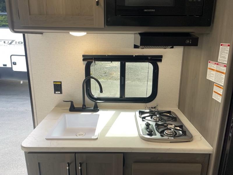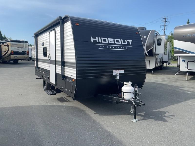 Open your horizons with the Hideout Sport Single Axle travel trailers by Keystone. They are compact, convenient, and lightweight; everything you're looking for in an RV! Each model features an aluminum exterior, tinted safety glass windows, and a Super Flex TPO roof membrane for added durability. The interior includes blackout night shades for added privacy and real wood doors and drawers that will give a more at-home touch. The Girard tankless water heater is a feature you won't want to camp without, and the LED lighting will keep your space bright and open!