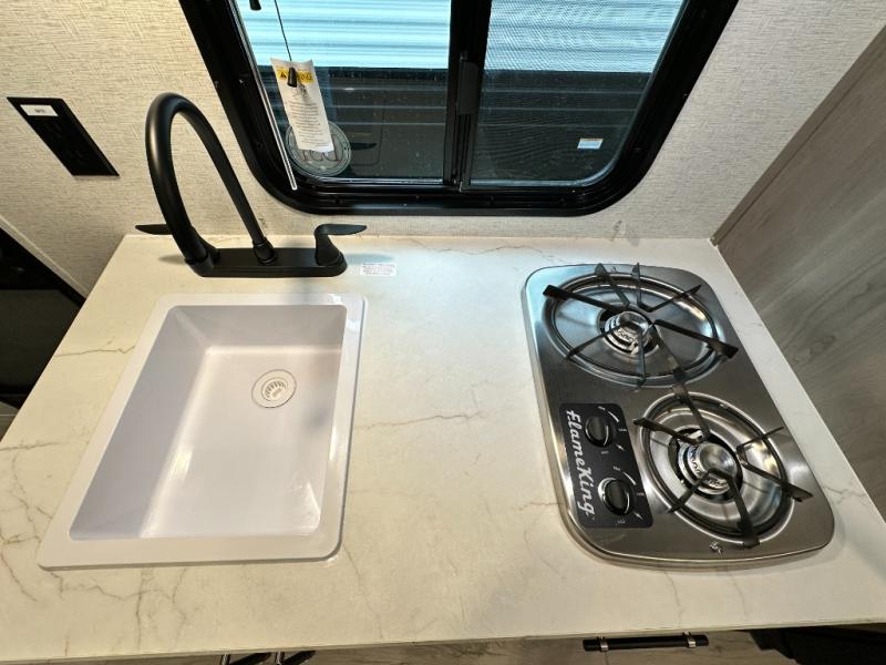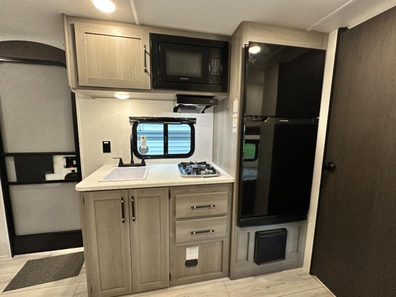 Open your horizons with the Hideout Sport Single Axle travel trailers by Keystone. They are compact, convenient, and lightweight; everything you're looking for in an RV! Each model features an aluminum exterior, tinted safety glass windows, and a Super Flex TPO roof membrane for added durability. The interior includes blackout night shades for added privacy and real wood doors and drawers that will give a more at-home touch. The Girard tankless water heater is a feature you won't want to camp without, and the LED lighting will keep your space bright and open!