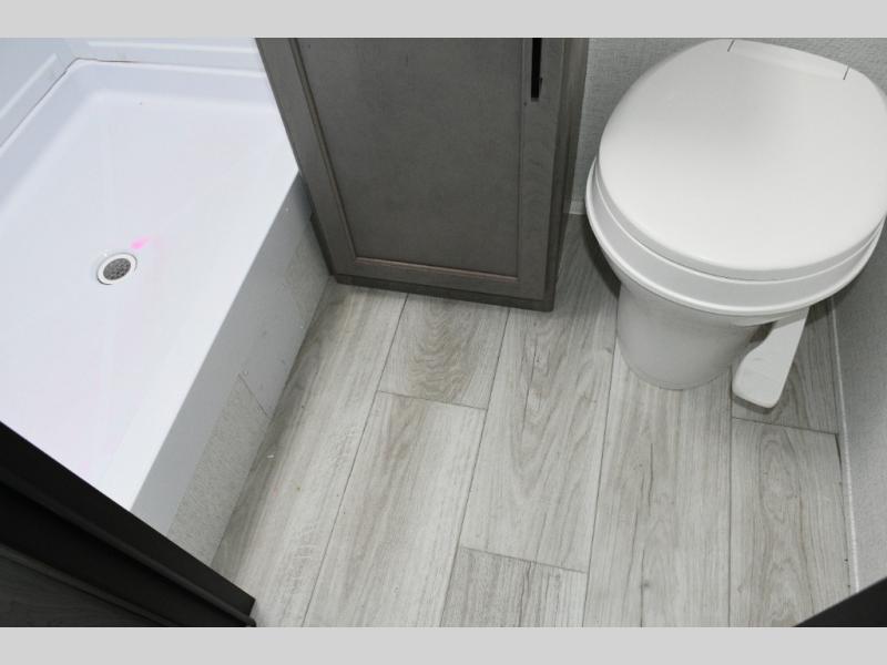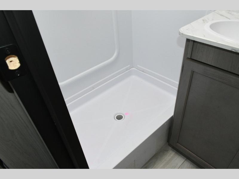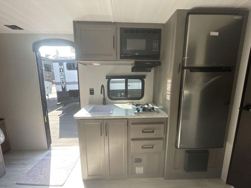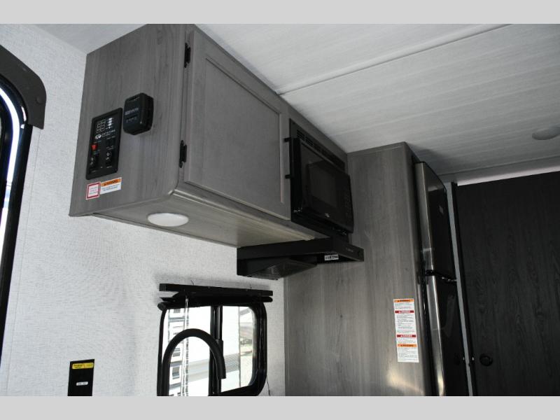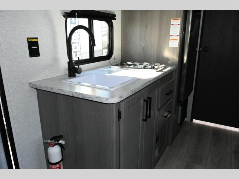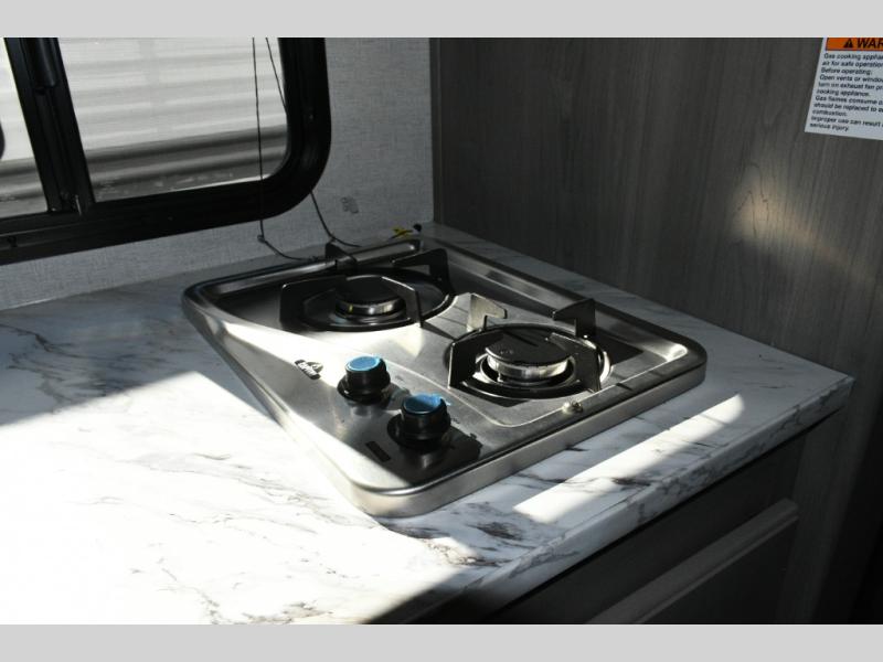 The full bathroom makes mornings and bedtime routines a breeze, and the chef of the group will appreciate the efficient kitchen with a two-burner cooktop and 7.7 cu. ft. refrigerator large enough for all your essentials. With everything within reach, it’s easy to whip up meals before heading out to explore the trails, lakes, or nearby parks.