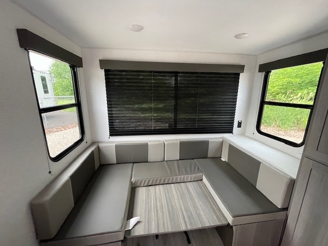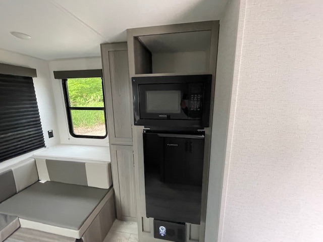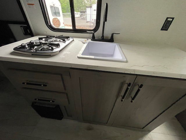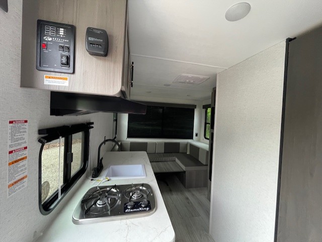 Open your horizons with the Hideout Sport Single Axle travel trailers by Keystone. They are compact, convenient, and lightweight; everything you're looking for in an RV! Each model features an aluminum exterior, tinted safety glass windows, and a Super Flex TPO roof membrane for added durability. The interior includes blackout night shades for added privacy and solid wood doors and drawers that will give a more at-home touch. The Girard tankless water heater is a feature you won't want to camp without, and the LED lighting will keep your space bright and open!