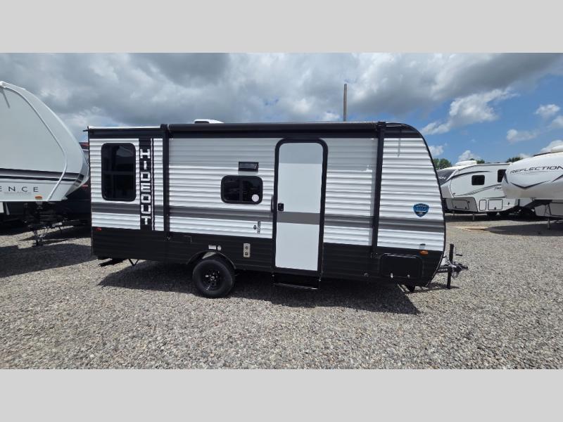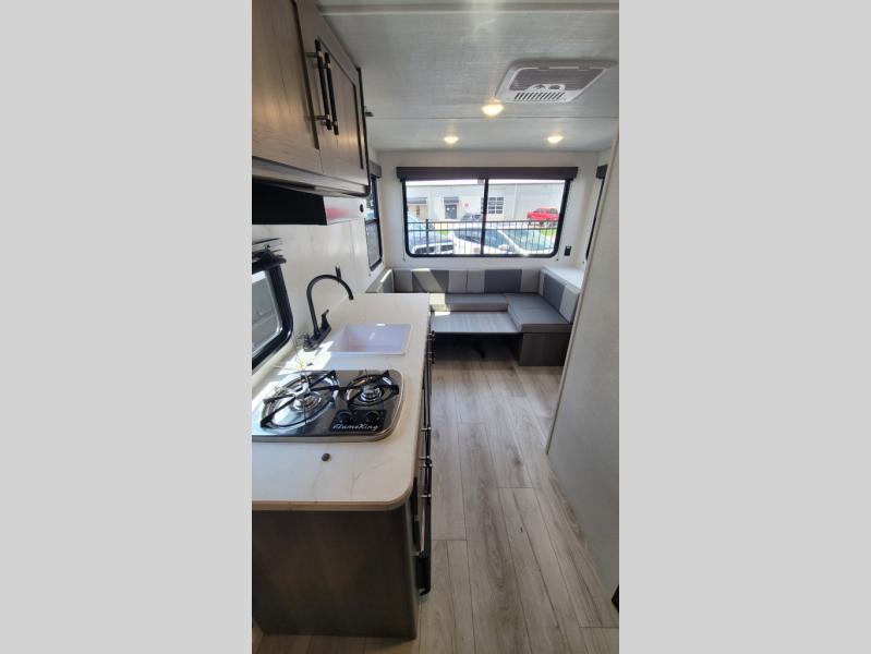 Open your horizons with the Hideout Sport Single Axle travel trailers by Keystone. They are compact, convenient, and lightweight; everything you're looking for in an RV! Each model features an aluminum exterior, tinted safety glass windows, and a Super Flex TPO roof membrane for added durability. The interior includes blackout night shades for added privacy and solid wood doors and drawers that will give a more at-home touch. The Girard tankless water heater is a feature you won't want to camp without, and the LED lighting will keep your space bright and open!