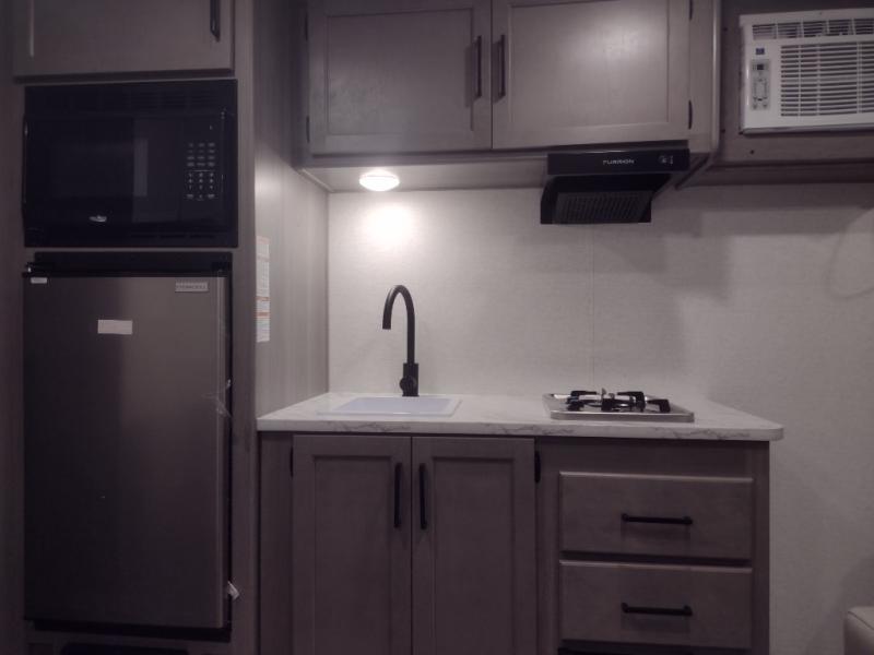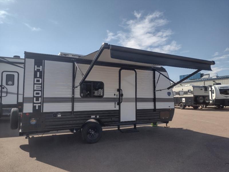 Open your horizons with the Hideout Sport Single Axle travel trailers by Keystone. They are compact, convenient, and lightweight; everything you're looking for in an RV! Each model features an aluminum exterior, tinted safety glass windows, and a Super Flex TPO roof membrane for added durability. The interior includes blackout night shades for added privacy and real wood doors and drawers that will give a more at-home touch. The Girard tankless water heater is a feature you won't want to camp without, and the LED lighting will keep your space bright and open!