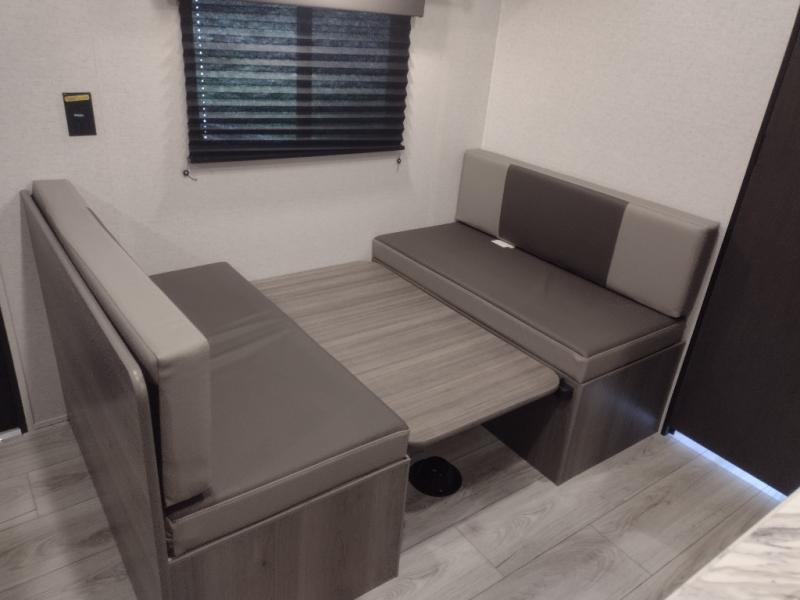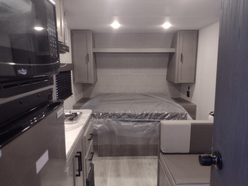 It's time to enjoy the great outdoors with family and friends at the campgrounds you like to meet everyone at! This trailer will allow three to four to camp comfortability with amenities such as a two burner cooktop, a 3.3 cu. ft. refrigerator, and a spacious rear full bathroom. The booth dinette offers a place to dine, read a book and even house an overnight guest. This model also includes a walk-around queen bed that will make your space feel a little more like home!