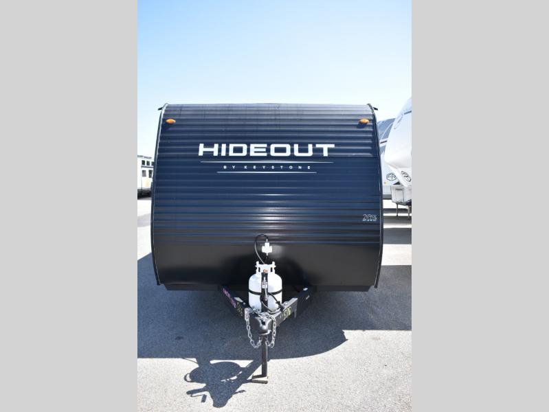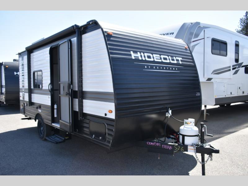 Open your horizons with the Hideout Sport Single Axle travel trailers by Keystone. They are compact, convenient, and lightweight; everything you're looking for in an RV! Each model features an aluminum exterior, tinted safety glass windows, and a Super Flex TPO roof membrane for added durability. The interior includes blackout night shades for added privacy and real wood doors and drawers that will give a more at-home touch. The Girard tankless water heater is a feature you won't want to camp without, and the LED lighting will keep your space bright and open!