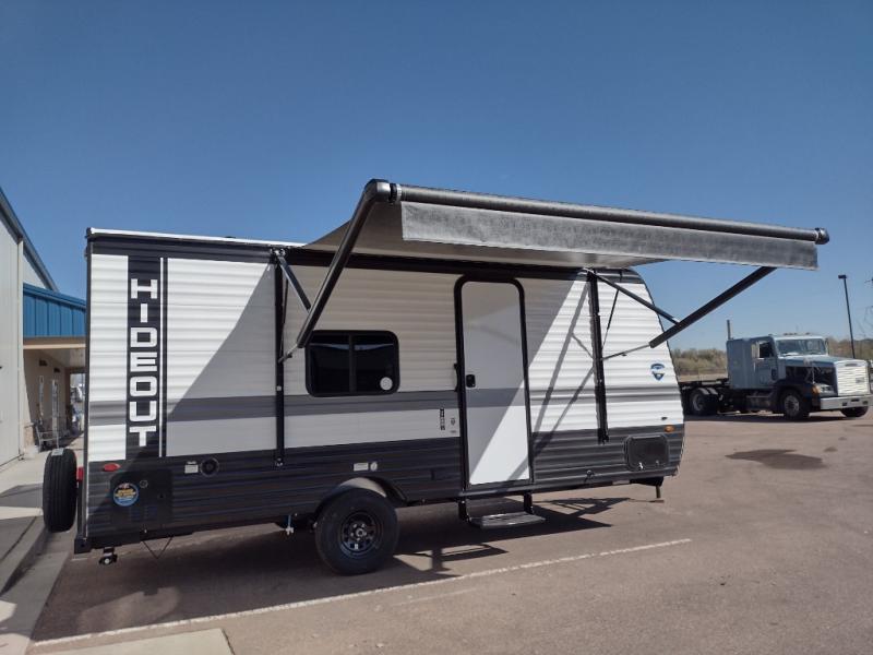 Open your horizons with the Hideout Sport Single Axle travel trailers by Keystone. They are compact, convenient, and lightweight; everything you're looking for in an RV! Each model features an aluminum exterior, tinted safety glass windows, and a Super Flex TPO roof membrane for added durability. The interior includes blackout night shades for added privacy and real wood doors and drawers that will give a more at-home touch. The Girard tankless water heater is a feature you won't want to camp without, and the LED lighting will keep your space bright and open!
