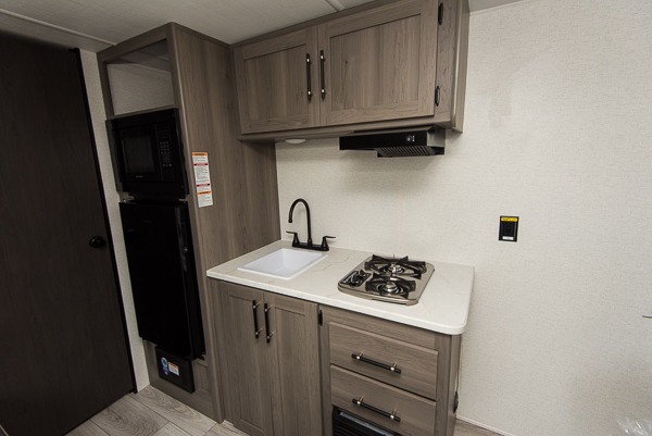 Open your horizons with the Hideout Sport Single Axle travel trailers by Keystone. They are compact, convenient, and lightweight; everything you're looking for in an RV! Each model features an aluminum exterior, tinted safety glass windows, and a Super Flex TPO roof membrane for added durability. The interior includes blackout night shades for added privacy and real wood doors and drawers that will give a more at-home touch. The Girard tankless water heater is a feature you won't want to camp without, and the LED lighting will keep your space bright and open!