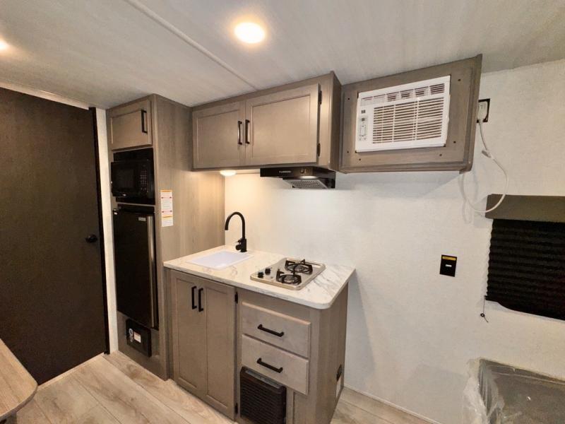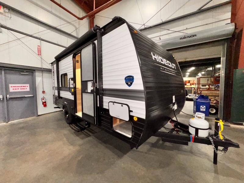 Open your horizons with the Hideout Sport Single Axle travel trailers by Keystone. They are compact, convenient, and lightweight; everything you're looking for in an RV! Each model features an aluminum exterior, tinted safety glass windows, and a Super Flex TPO roof membrane for added durability. The interior includes blackout night shades for added privacy and real wood doors and drawers that will give a more at-home touch. The Girard tankless water heater is a feature you won't want to camp without, and the LED lighting will keep your space bright and open!
