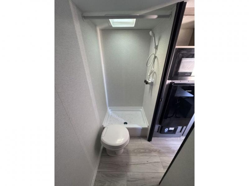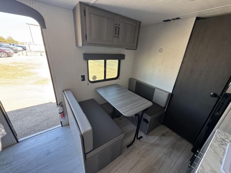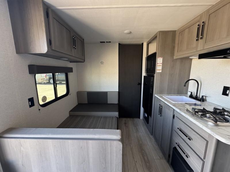 It's time to enjoy the great outdoors with family and friends at the campgrounds you like to meet everyone at! This trailer will allow three to four to camp comfortability with amenities such as a two burner cooktop, a 3.3 cu. ft. refrigerator, and a spacious rear full bathroom. The booth dinette offers a place to dine, read a book and even house an overnight guest. This model also includes a walk-around queen bed that will make your space feel a little more like home!