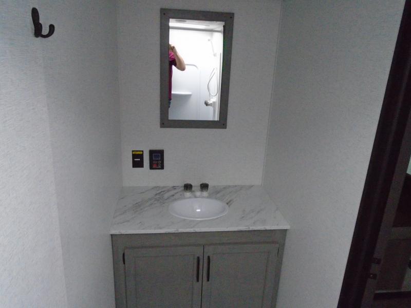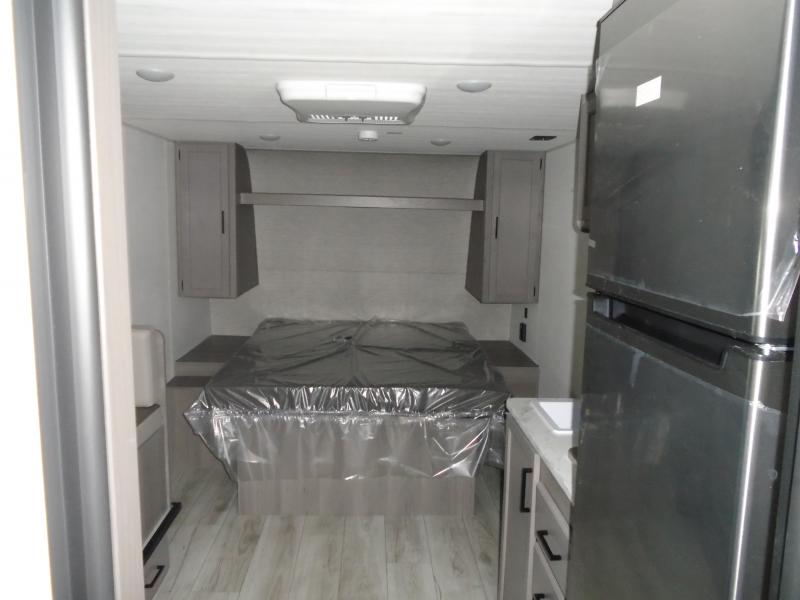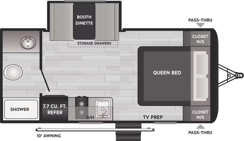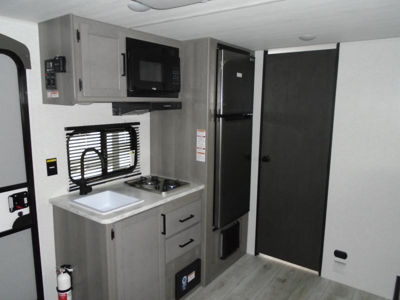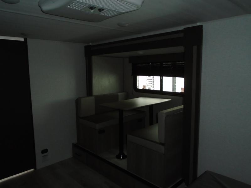 It's time to enjoy the great outdoors with family and friends at the campgrounds you like to meet everyone at! This trailer will allow three to four to camp comfortability with amenities such as a two burner cooktop, a 7.7 cu. ft. refrigerator, and a spacious rear full bathroom. The booth dinette slide offers a place to dine, read a book and even provides sleeping space and storage drawers for board games or throw blankets. The slide gives the interior more floor space as well. This model also includes a walk-around queen bed that will make your space feel a little more like home!