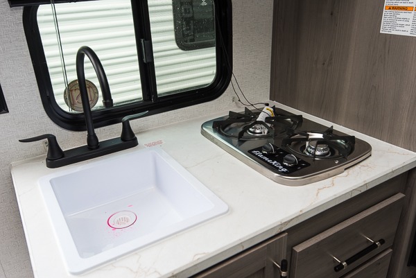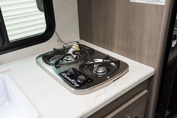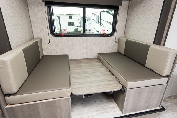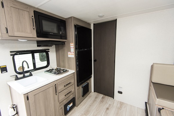 It's time to enjoy the great outdoors with family and friends at the campgrounds you like to meet everyone at! This trailer will allow three to four to camp comfortability with amenities such as a two burner cooktop, a 7.7 cu. ft. refrigerator, and a spacious rear full bathroom. The booth dinette slide offers a place to dine, read a book and even provides sleeping space and storage drawers for board games or throw blankets. The slide gives the interior more floor space as well. This model also includes a walk-around queen bed that will make your space feel a little more like home!