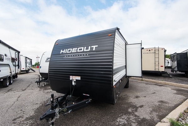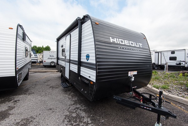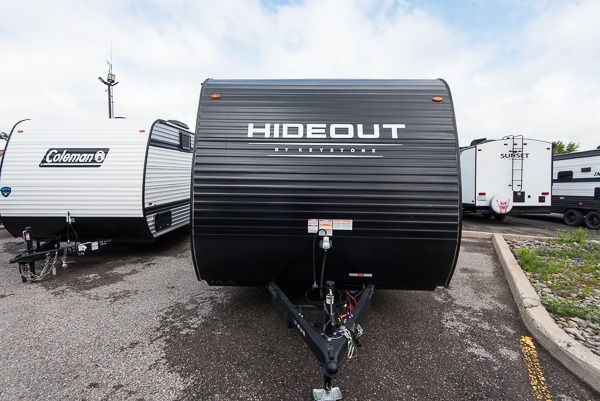 Open your horizons with the Hideout Sport Single Axle travel trailers by Keystone. They are compact, convenient, and lightweight; everything you're looking for in an RV! Each model features an aluminum exterior, tinted safety glass windows, and a Super Flex TPO roof membrane for added durability. The interior includes blackout night shades for added privacy and solid wood doors and drawers that will give a more at-home touch. The Girard tankless water heater is a feature you won't want to camp without, and the LED lighting will keep your space bright and open!