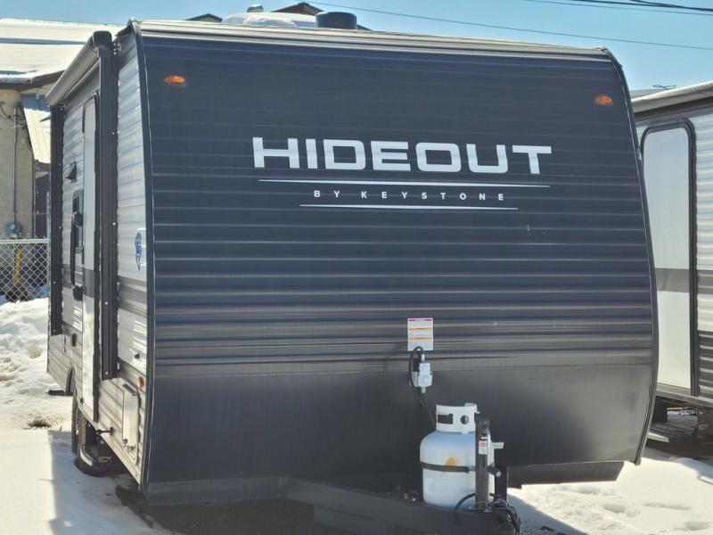 Open your horizons with the Hideout Sport Single Axle travel trailers by Keystone. They are compact, convenient, and lightweight; everything you're looking for in an RV! Each model features an aluminum exterior, tinted safety glass windows, and a Super Flex TPO roof membrane for added durability. The interior includes blackout night shades for added privacy and solid wood doors and drawers that will give a more at-home touch. The Girard tankless water heater is a feature you won't want to camp without, and the LED lighting will keep your space bright and open!