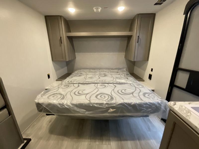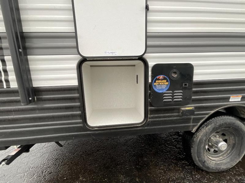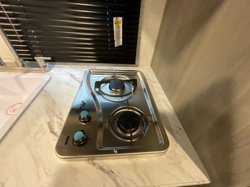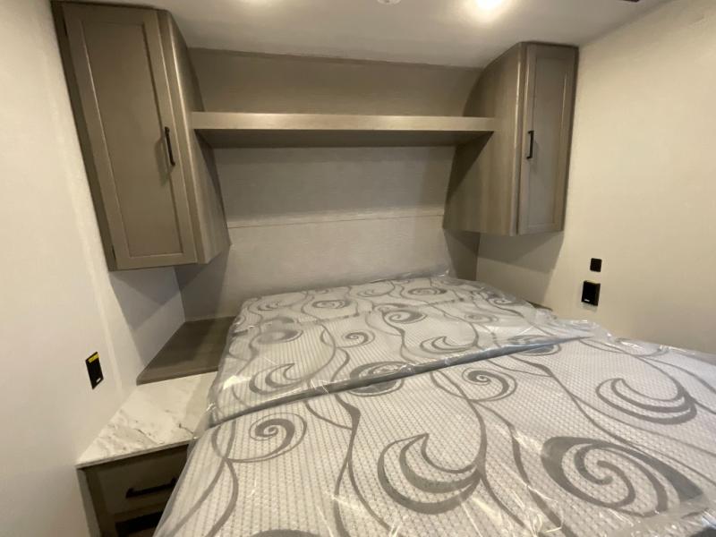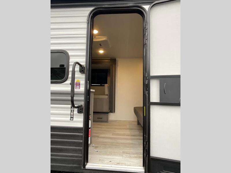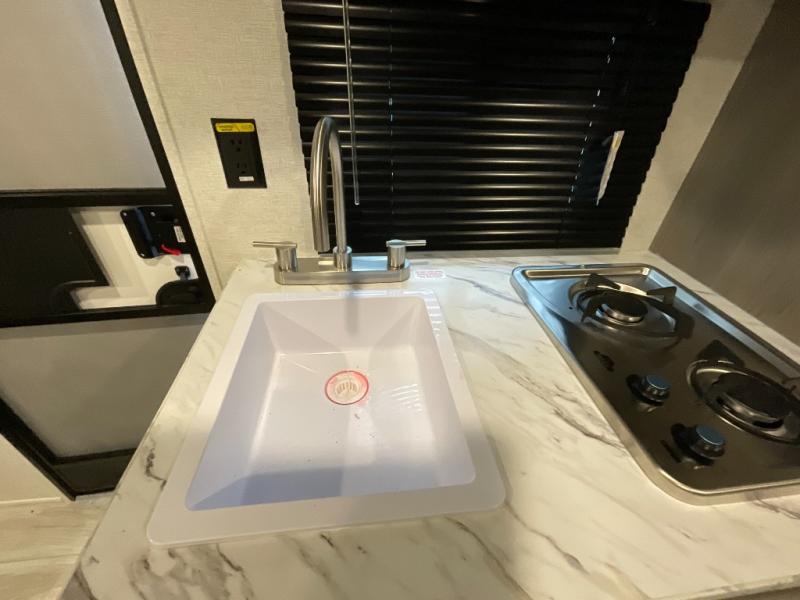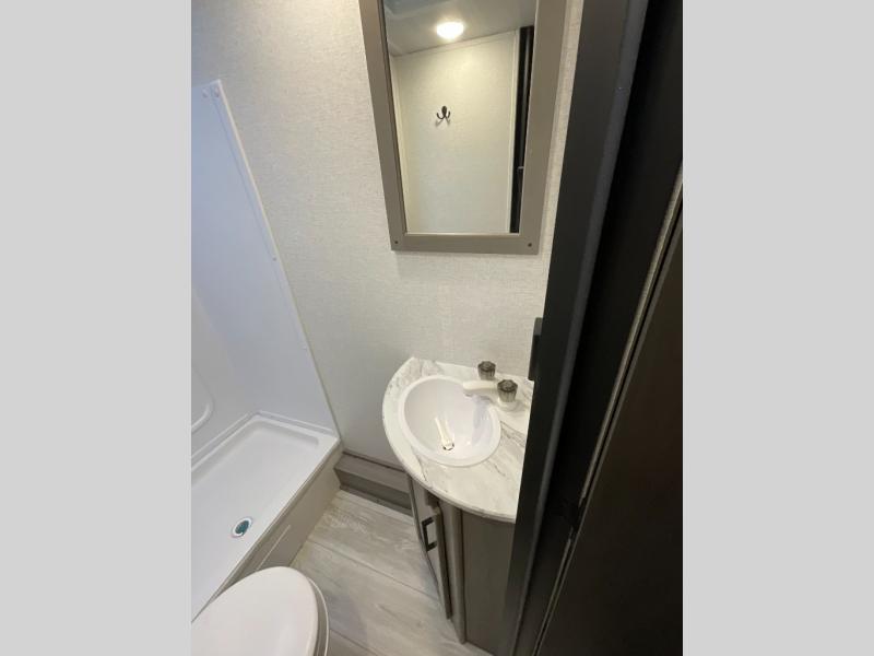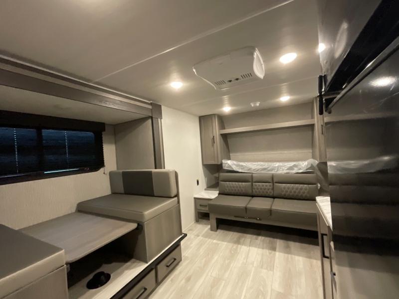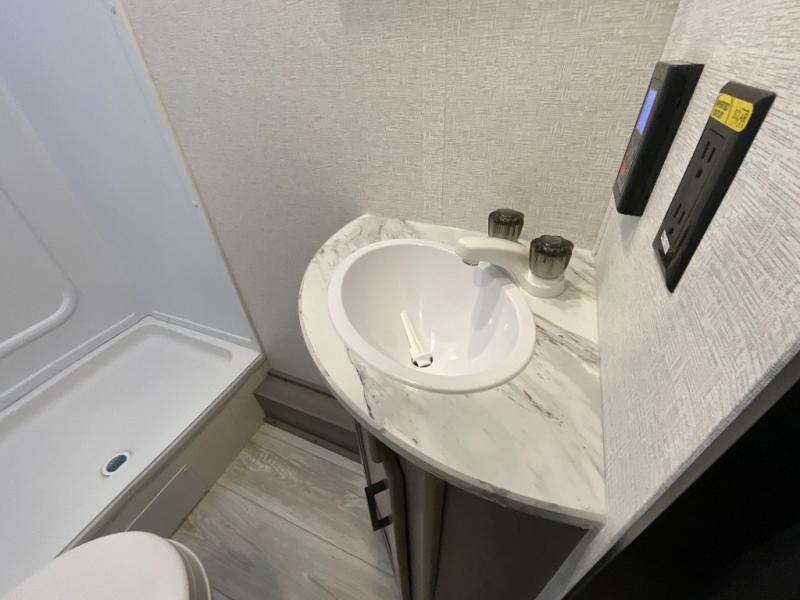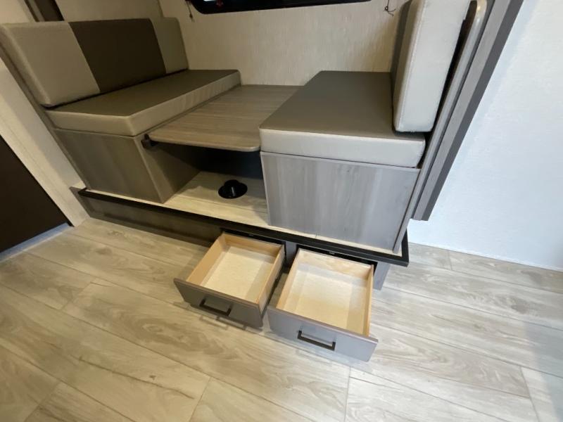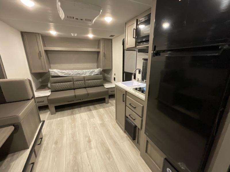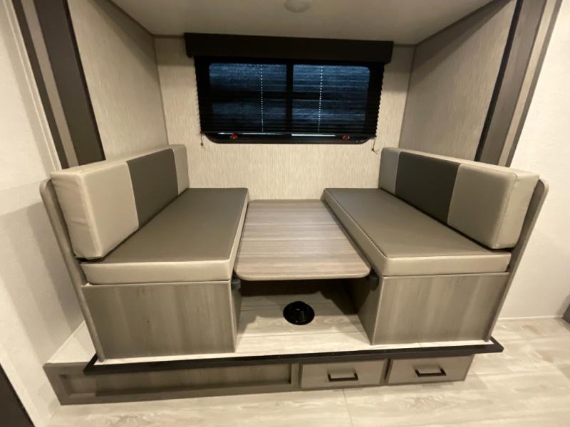 Inside, you’ll find a bright, thoughtfully laid-out interior with everything you need for memorable trips. The 181BH includes comfortable double-over-double bunks, giving kids or guests a cozy place to sleep without taking up valuable living space. The queen bed offers a relaxing spot to unwind after a full day outdoors, while the convertible dinette adds extra flexibility for sleeping or dining. The kitchen is equipped with modern appliances, plenty of storage, and all the essentials for cooking meals on the go. A well-designed bathroom with a shower and tub adds convenience for families.