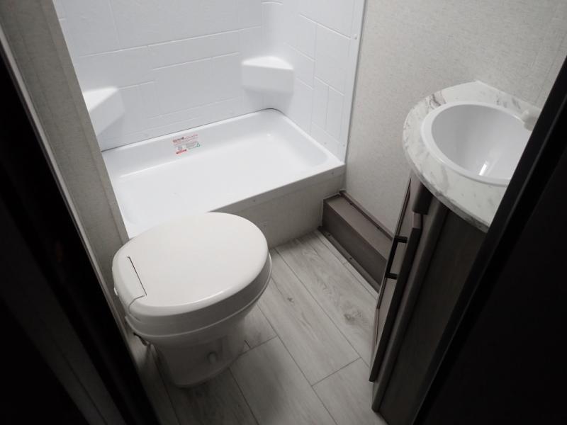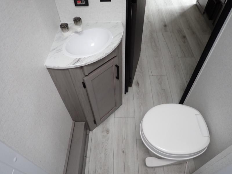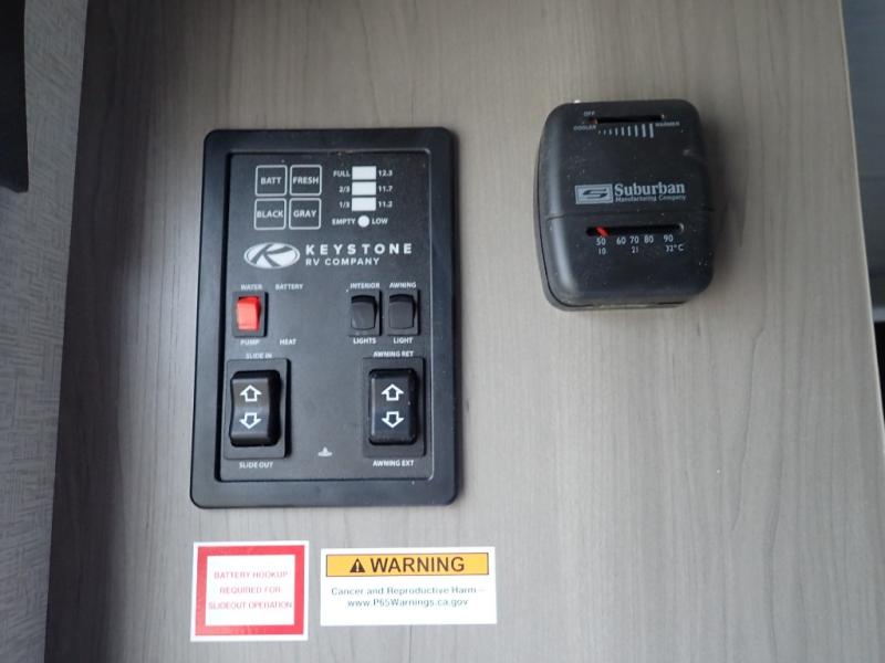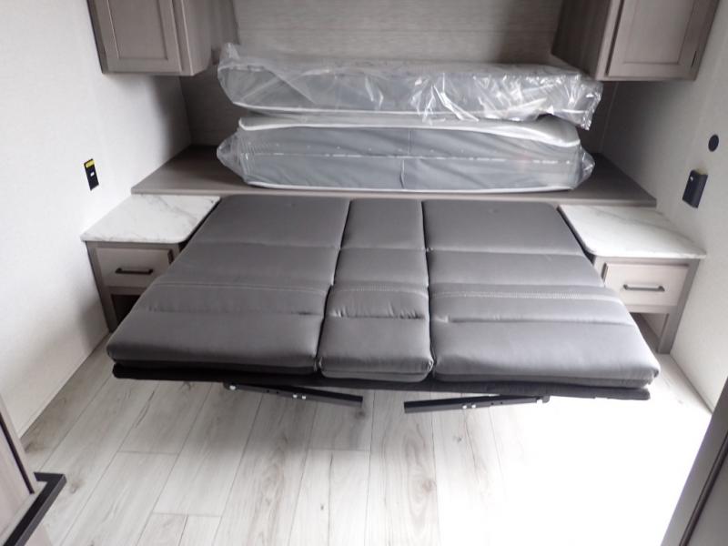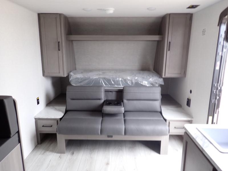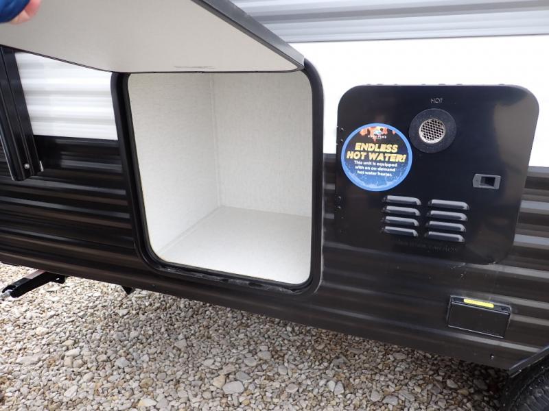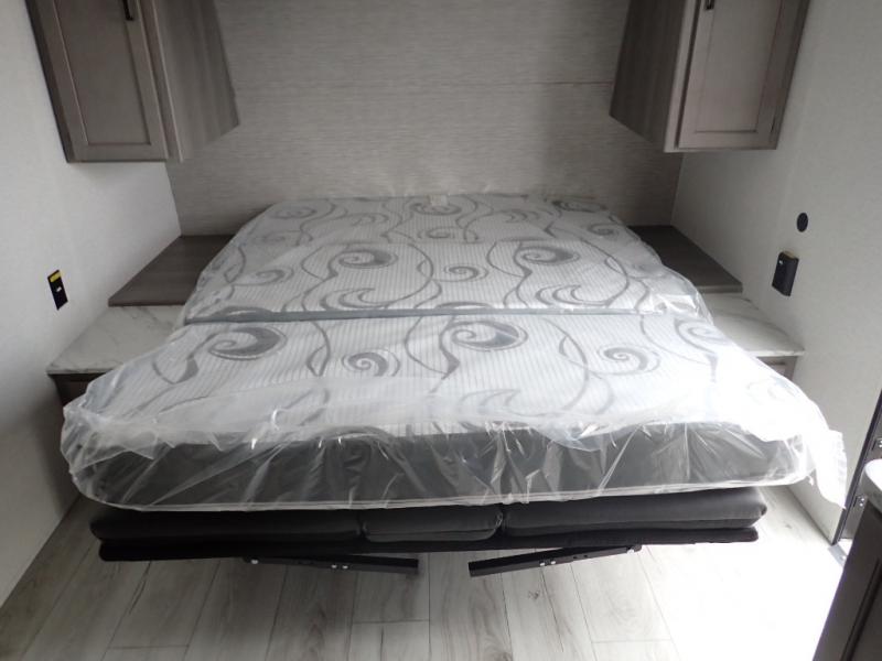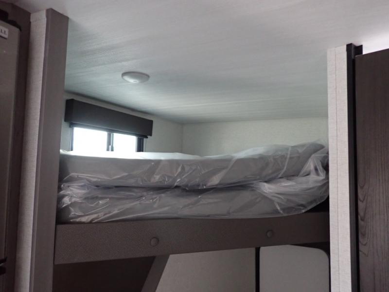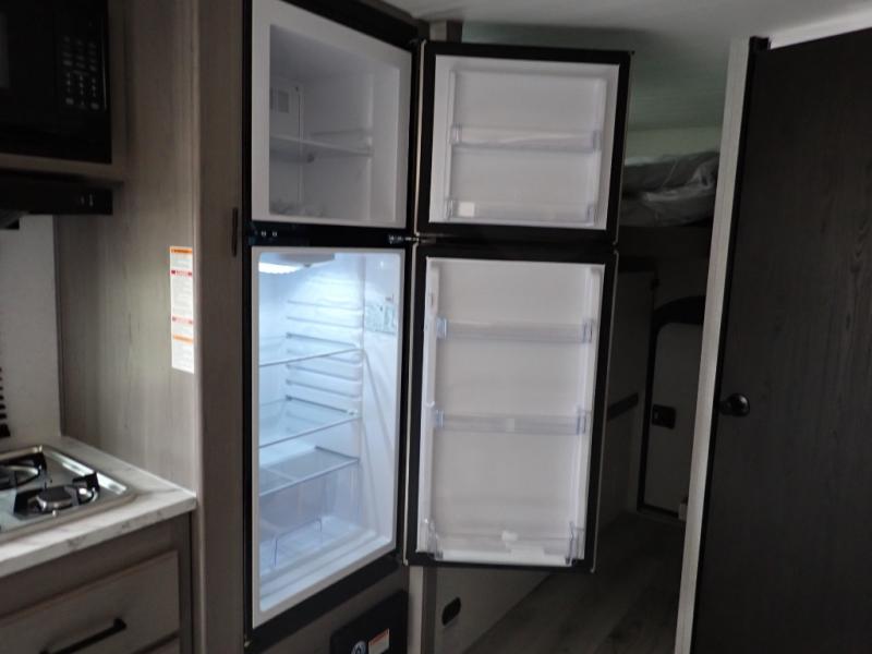 You will love how versatile this travel trailer is with its front Murphy bed that has a queen bed to lay your head on at night, folds down into a sofa, and even has shoe storage underneath it! There is a set of double bunk beds in the rear corner and a U-shaped dinette slide with storage drawers to keep your games out of the way. There is also outside storage under the bunks where you can easily flip up the bottom bunk to unload everything! You can keep everyone well fed with the two burner cooktop and 7.7 cu. ft. refrigerator, and the 15' power awning outdoors will provide a place for you all to visit after dinner.