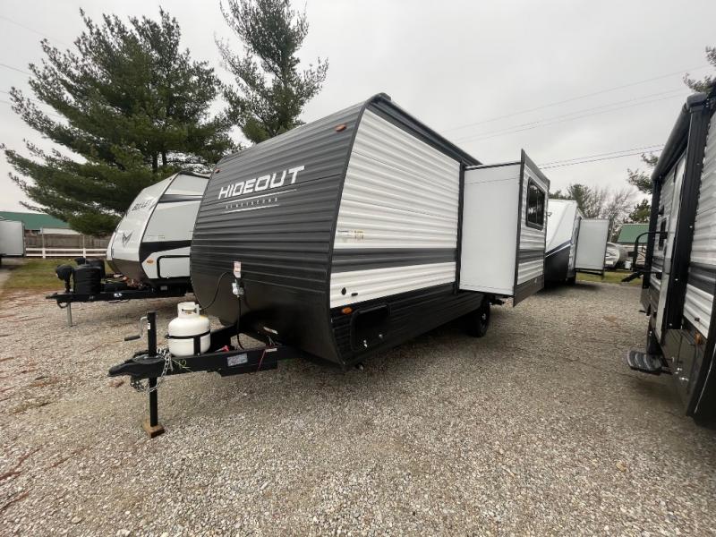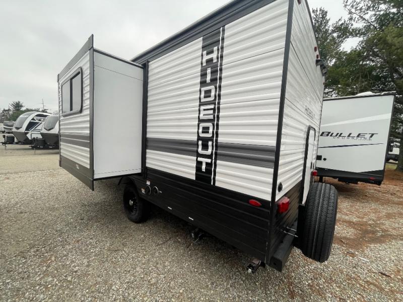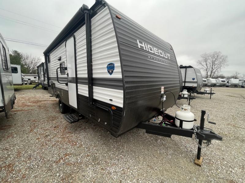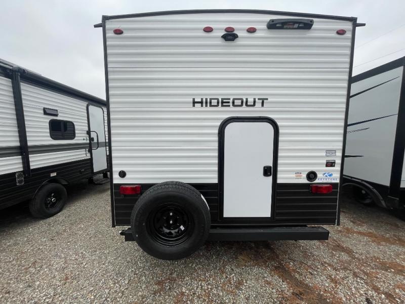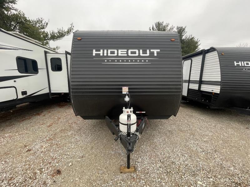 Open your horizons with the Hideout Sport Single Axle travel trailers by Keystone. They are compact, convenient, and lightweight; everything you're looking for in an RV! Each model features an aluminum exterior, tinted safety glass windows, and a Super Flex TPO roof membrane for added durability. The interior includes blackout night shades for added privacy and real wood doors and drawers that will give a more at-home touch. The Girard tankless water heater is a feature you won't want to camp without, and the LED lighting will keep your space bright and open!