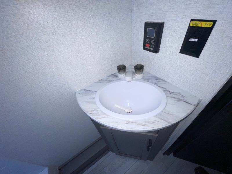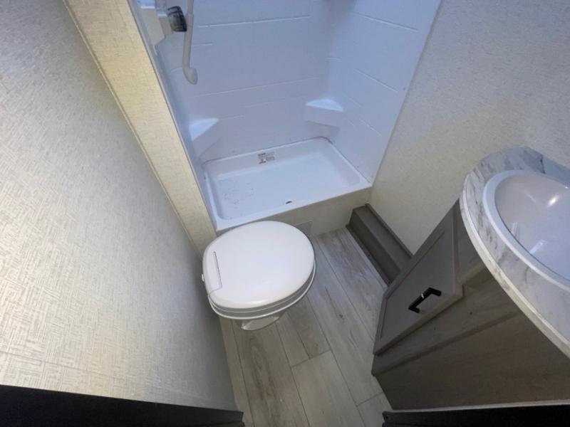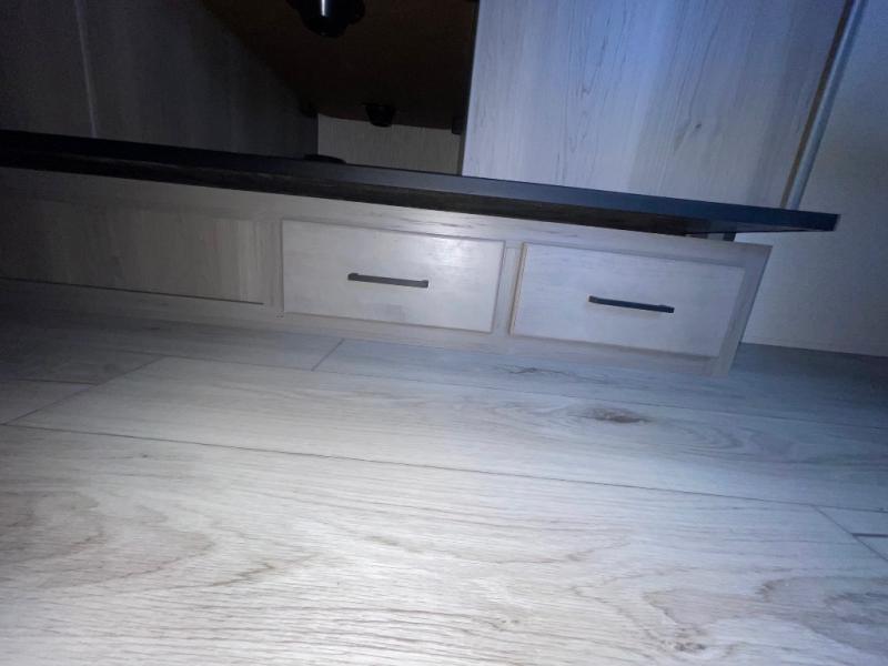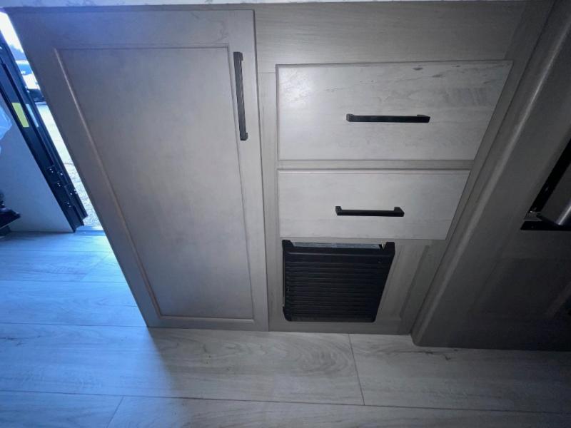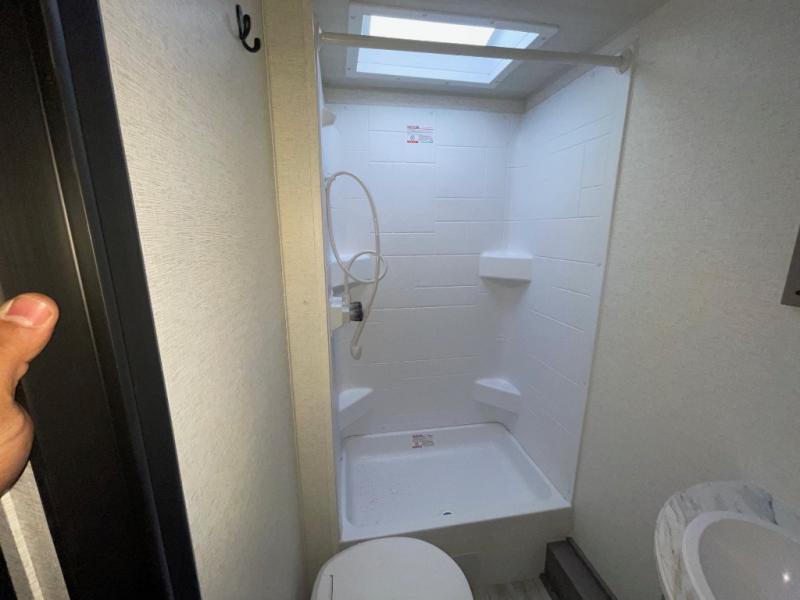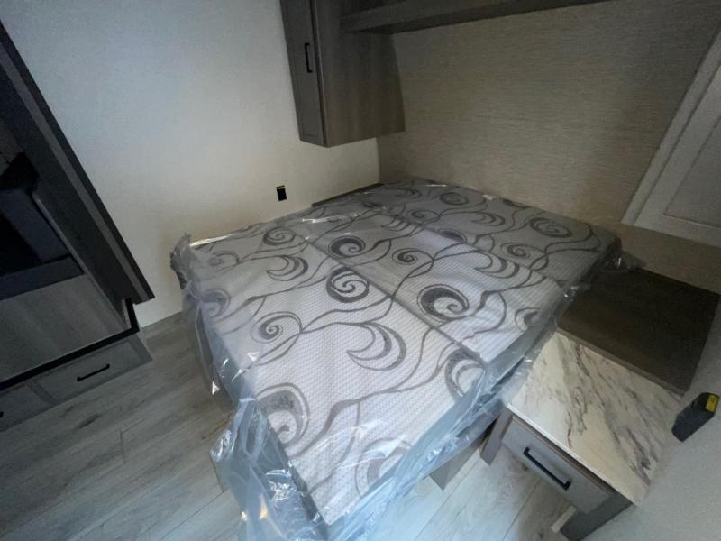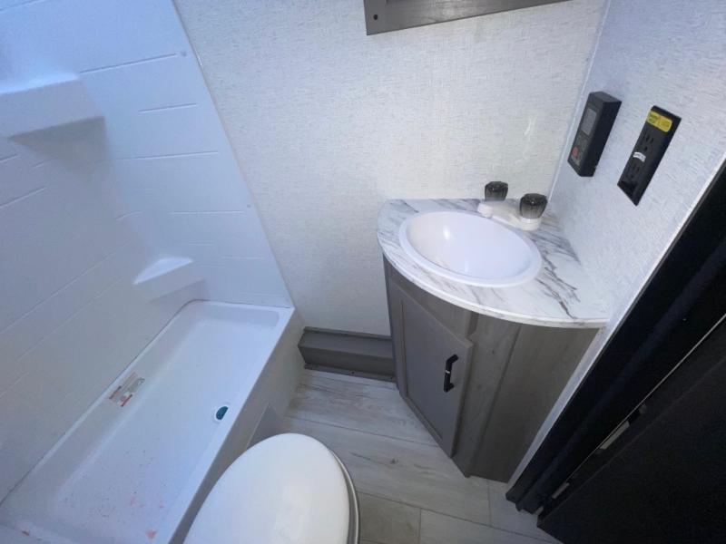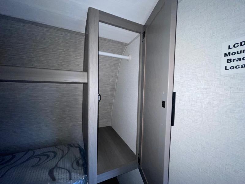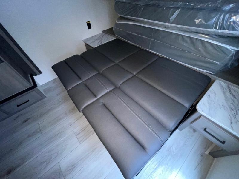 You will love how versatile this travel trailer is with its front Murphy bed that has a queen bed to lay your head on at night, folds down into a sofa, and even has shoe storage underneath it! There is a set of double bunk beds in the rear corner and a U-shaped dinette slide with storage drawers to keep your games out of the way. There is also outside storage under the bunks where you can easily flip up the bottom bunk to unload everything! You can keep everyone well fed with the two burner cooktop and 7.7 cu. ft. refrigerator, and the 15' power awning outdoors will provide a place for you all to visit after dinner.