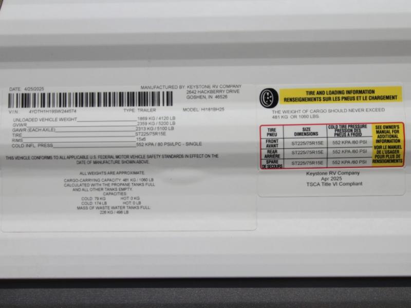 New 2025 Keystone RV Hideout Sport Single Axle 181BH Travel Trailer