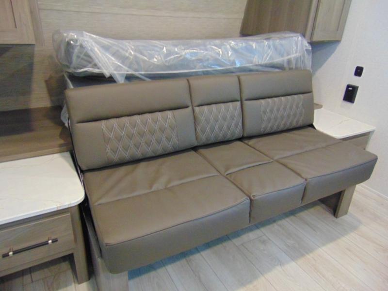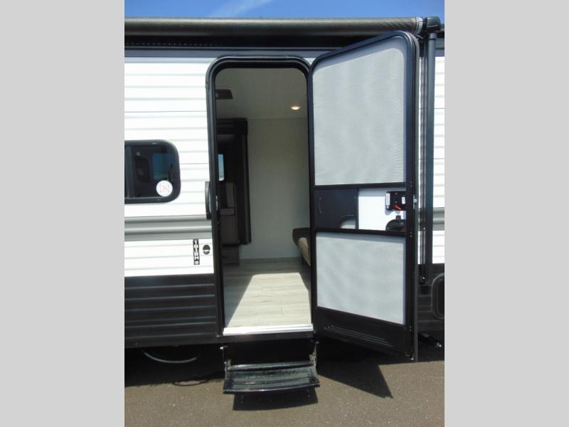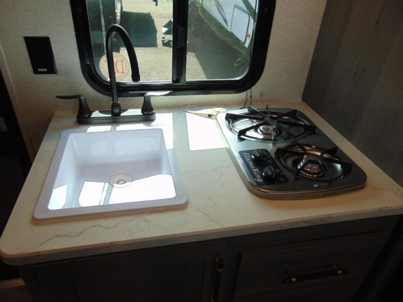 You will love how versatile this travel trailer is with its front Murphy bed that has a queen bed to lay your head on at night, folds down into a sofa, and even has shoe storage underneath it! There is a set of double bunk beds in the rear corner and a U-shaped dinette slide with storage drawers to keep your games out of the way. There is also outside storage under the bunks where you can easily flip up the bottom bunk to unload everything! You can keep everyone well fed with the two burner cooktop and 7.7 cu. ft. refrigerator, and the 15' power awning outdoors will provide a place for you all to visit after dinner.
