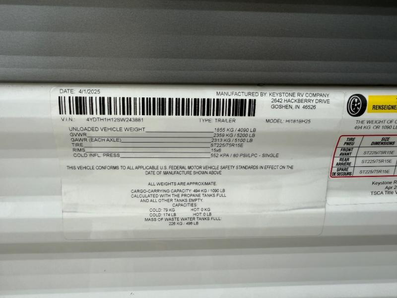 New 2025 Keystone RV Hideout Sport Single Axle 181BH Travel Trailer