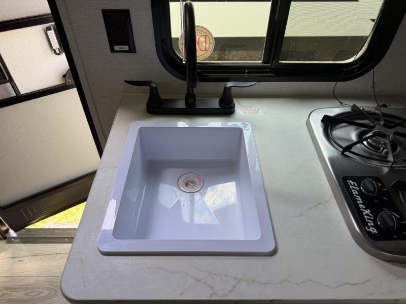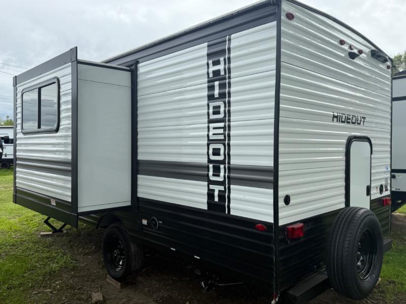 Open your horizons with the Hideout Sport Single Axle travel trailers by Keystone. They are compact, convenient, and lightweight; everything you're looking for in an RV! Each model features an aluminum exterior, tinted safety glass windows, and a Super Flex TPO roof membrane for added durability. The interior includes blackout night shades for added privacy and real wood doors and drawers that will give a more at-home touch. The Girard tankless water heater is a feature you won't want to camp without, and the LED lighting will keep your space bright and open!