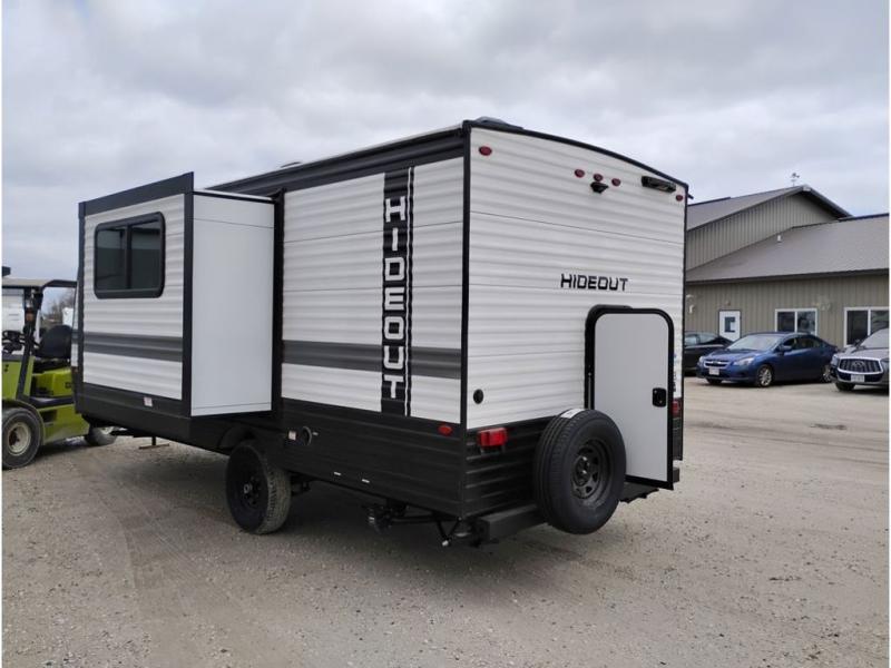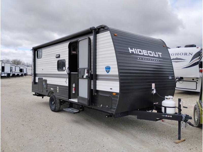 Open your horizons with the Hideout Sport Single Axle travel trailers by Keystone. They are compact, convenient, and lightweight; everything you're looking for in an RV! Each model features an aluminum exterior, tinted safety glass windows, and a Super Flex TPO roof membrane for added durability. The interior includes blackout night shades for added privacy and solid wood doors and drawers that will give a more at-home touch. The Girard tankless water heater is a feature you won't want to camp without, and the LED lighting will keep your space bright and open!
