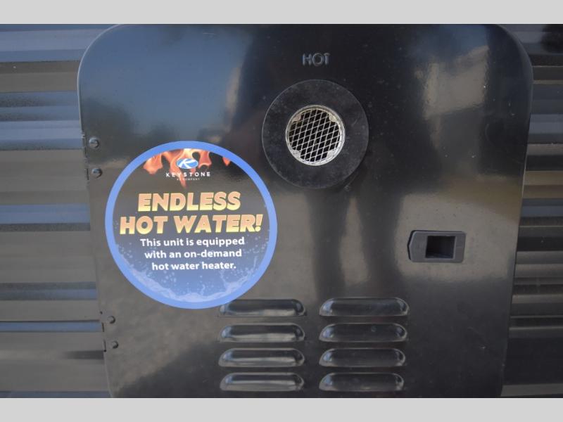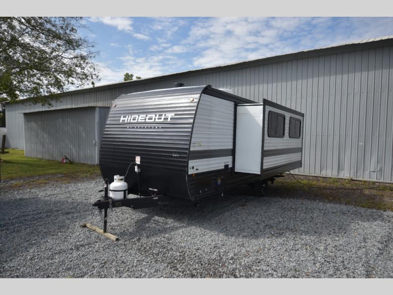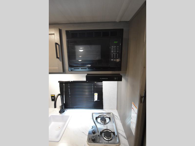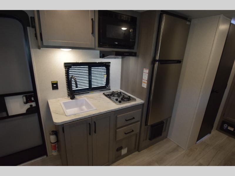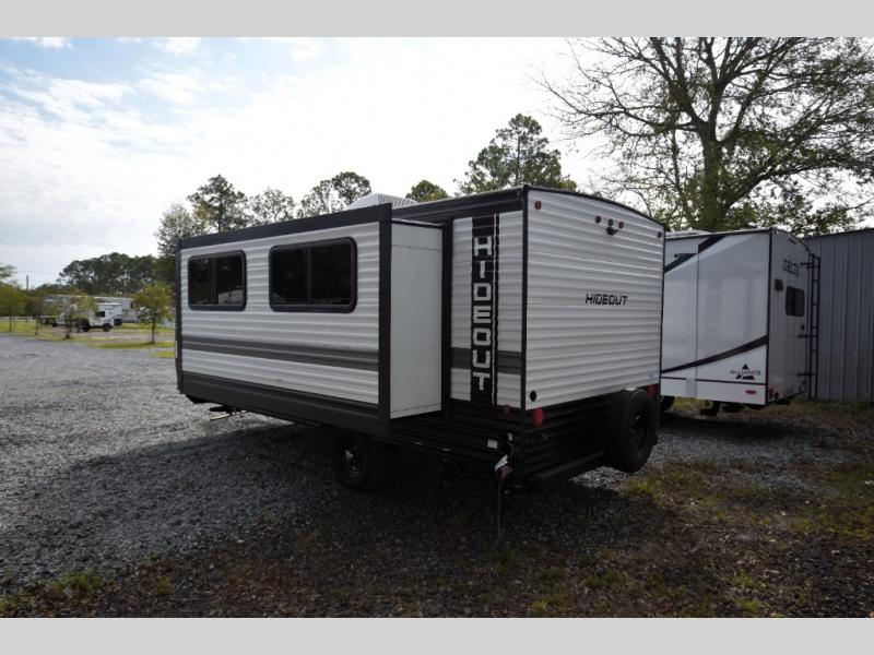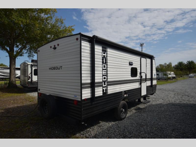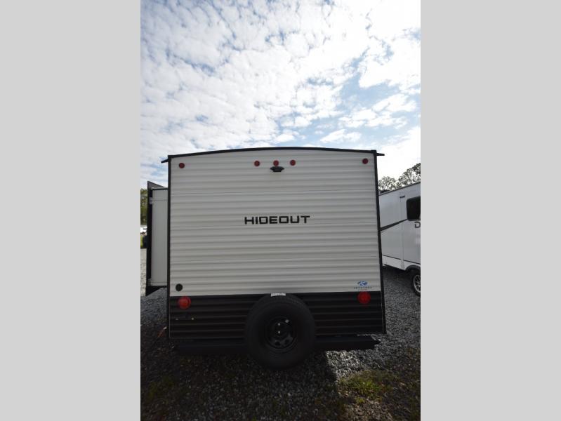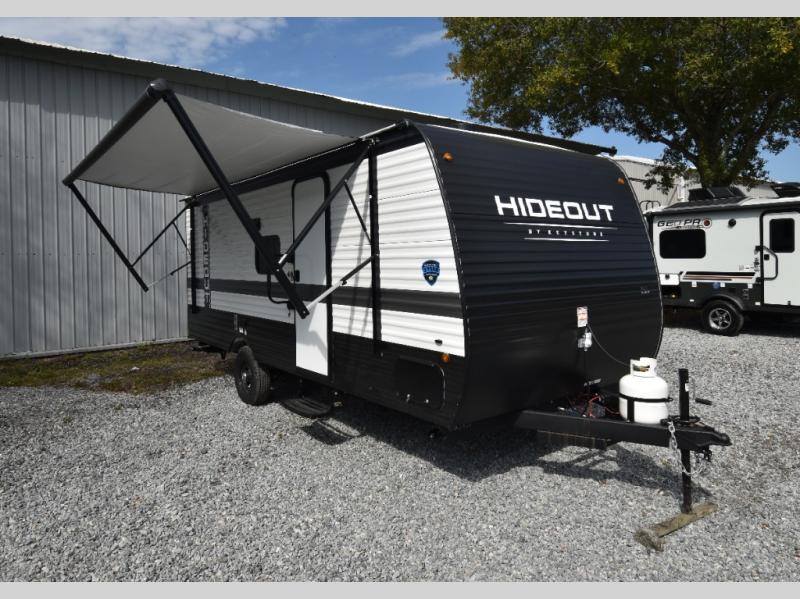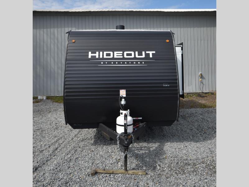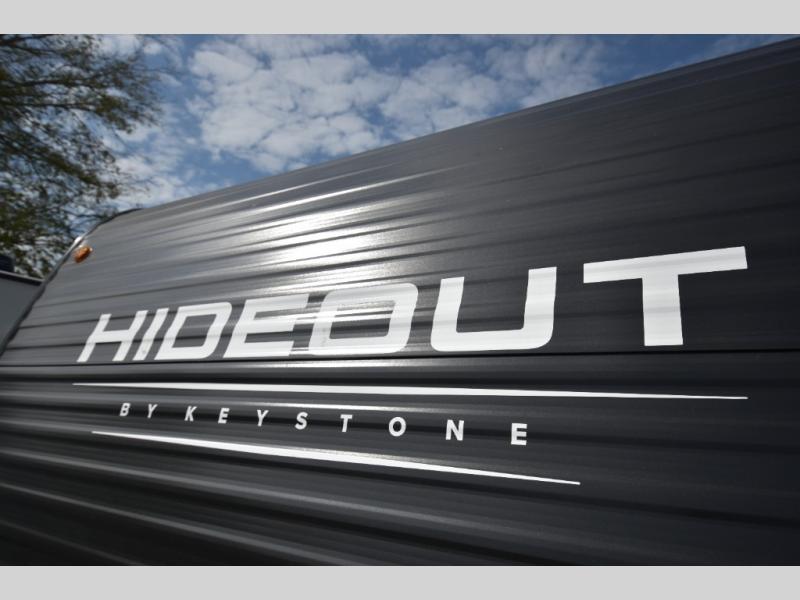 Open your horizons with the Hideout Sport Single Axle travel trailers by Keystone. They are compact, convenient, and lightweight; everything you're looking for in an RV! Each model features an aluminum exterior, tinted safety glass windows, and an I-beam frame with stamped steel cross-members and outriggers for added support. The interior includes blackout night shades for added privacy and real wood doors and drawers that will give a more at-home touch. The Girard tankless water heater is a feature you won't want to camp without, and the LED lighting will keep your space bright and open!
