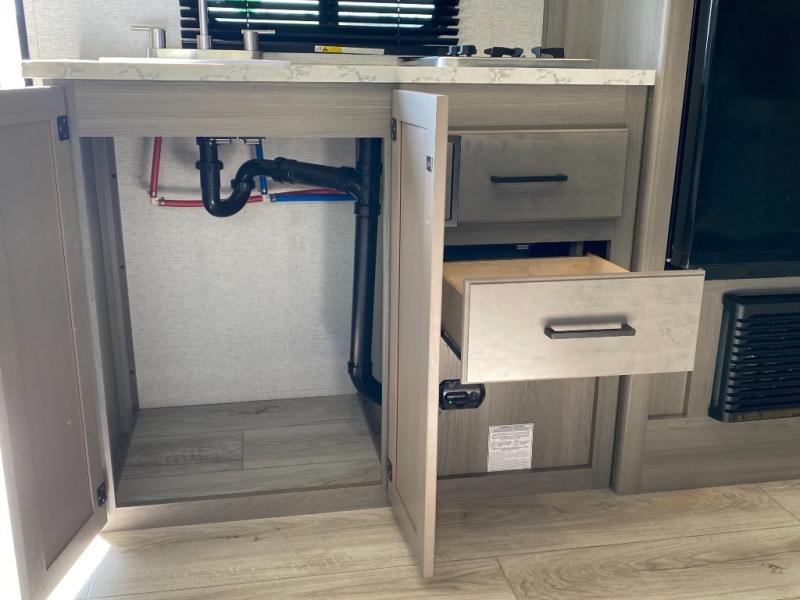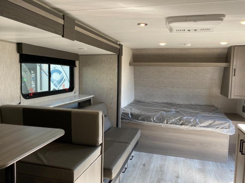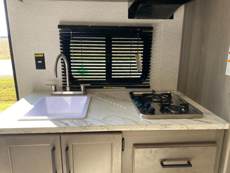Open your horizons with the Hideout Sport Single Axle travel trailers by Keystone. They are compact, convenient, and lightweight; everything you're looking for in an RV! Each model features an aluminum exterior, tinted safety glass windows, and a Super Flex TPO roof membrane for added durability. The interior includes blackout night shades for added privacy and real wood doors and drawers that will give a more at-home touch. The Girard tankless water heater is a feature you won't want to camp without, and the LED lighting will keep your space bright and open!