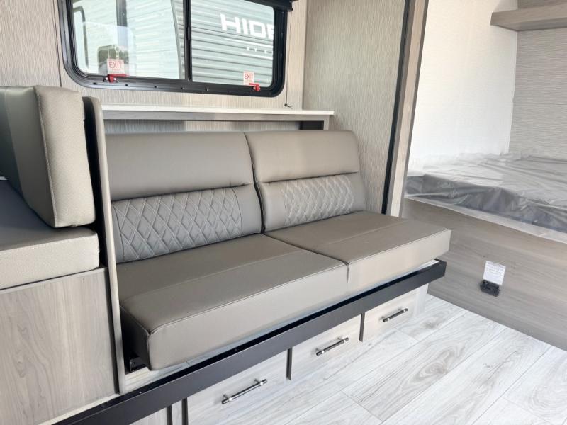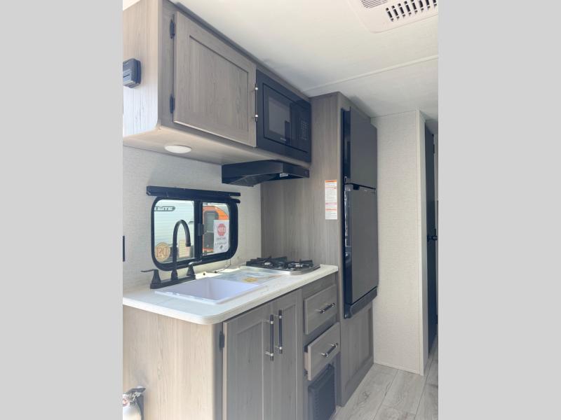 Open your horizons with the Hideout Sport Single Axle travel trailers by Keystone. They are compact, convenient, and lightweight; everything you're looking for in an RV! Each model features an aluminum exterior, tinted safety glass windows, and a Super Flex TPO roof membrane for added durability. The interior includes blackout night shades for added privacy and real wood doors and drawers that will give a more at-home touch. The Girard tankless water heater is a feature you won't want to camp without, and the LED lighting will keep your space bright and open!