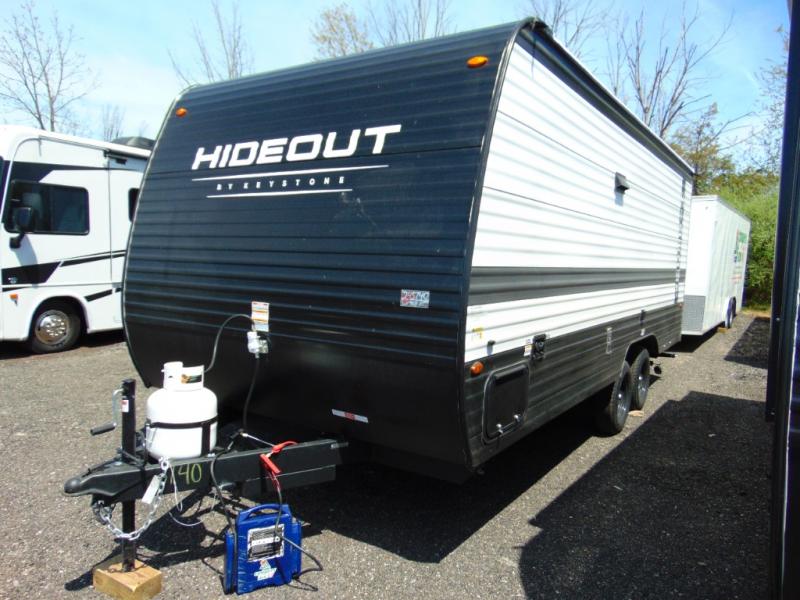 Open your horizons with the Hideout Sport Single Axle travel trailers by Keystone. They are compact, convenient, and lightweight; everything you're looking for in an RV! Each model features an aluminum exterior, tinted safety glass windows, and a Super Flex TPO roof membrane for added durability. The interior includes blackout night shades for added privacy and real wood doors and drawers that will give a more at-home touch. The Girard tankless water heater is a feature you won't want to camp without, and the LED lighting will keep your space bright and open!