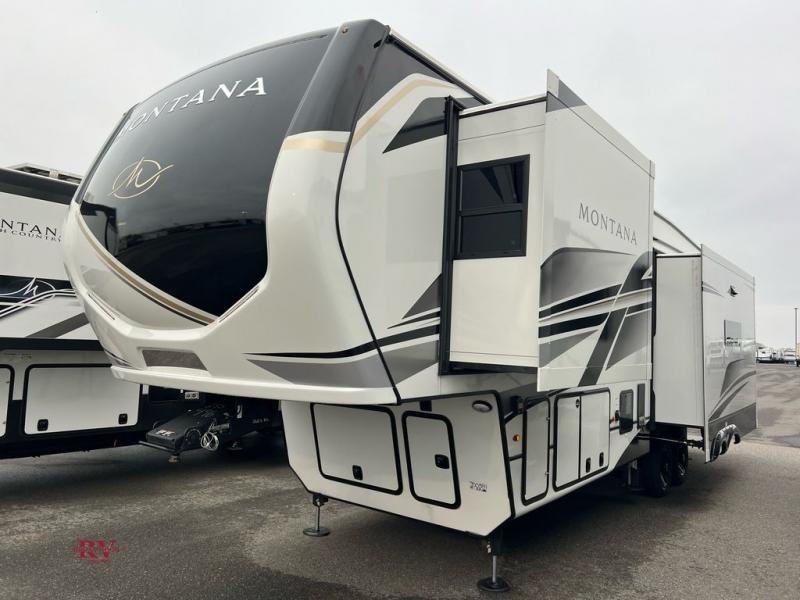 Enjoy luxury, innovation, and the outdoors in any one of Montana's finest fifth wheels. Each set the standard with exceptional features, and exciting factory installed options to provide you a great home on the road. Keystone's exclusive 12" I-beam chassis with z-frame technology has been reengineered to be stronger, lighter and built for "the long haul". A few other construction features you will appreciate include a Road Armor suspension, 2" thick, dual-layered lauan high gloss fiberglass sidewalls, a MaxTurn front cap with KeyShield automotive-grade paint, and a fully walkable roof with an Alpha seamless TPO membrane system. Each feature stylish interiors with two new decor choices paired with beautiful hand-glazed hardwood cabinetry, vinyl flooring throughout, central vacuum, plus a Blade Pure airflow system for clean, quite, and cool air!