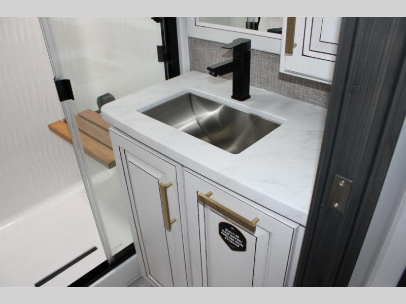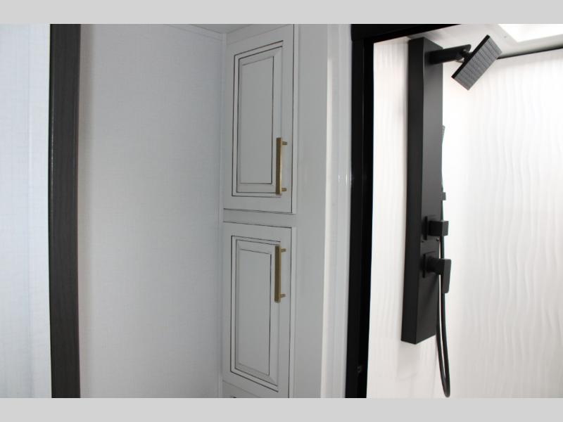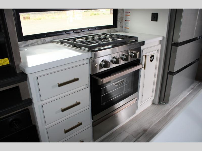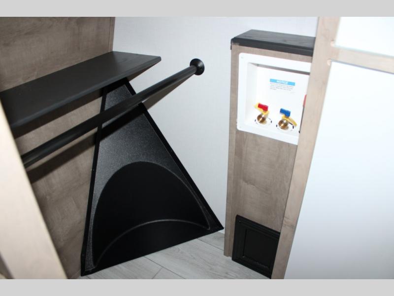 - Stackable washer and dryer prep allows for extended off-grid travel.