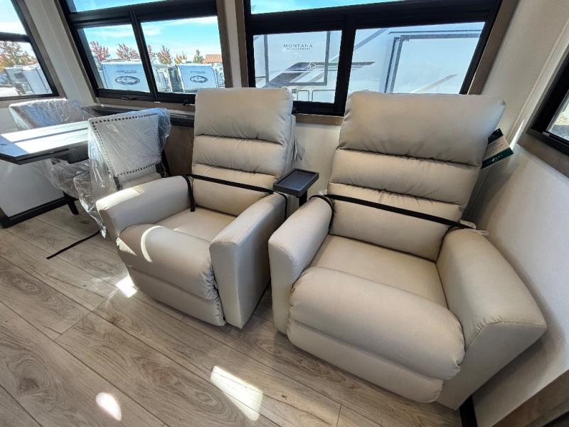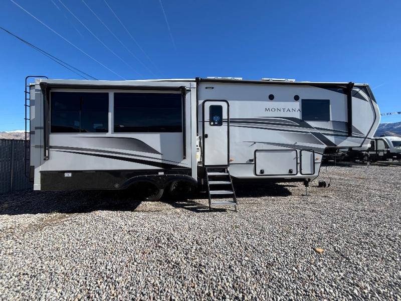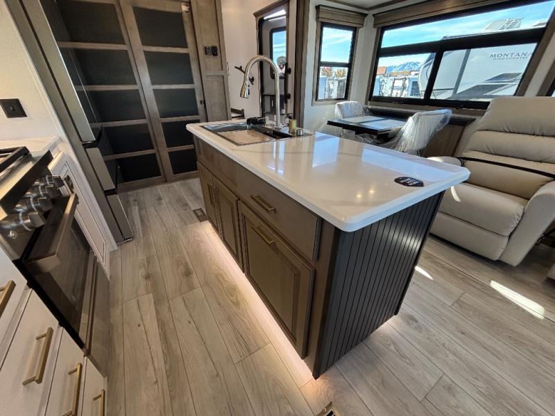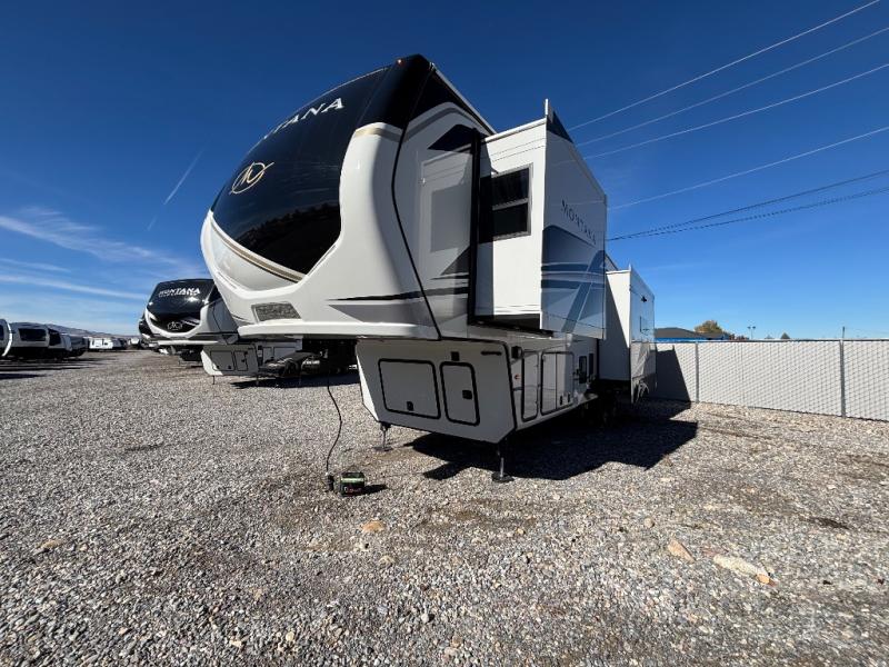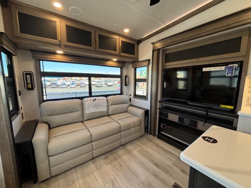 Enjoy luxury, innovation, and the outdoors in any one of Montana's finest fifth wheels. Each set the standard with exceptional features, and exciting factory installed options to provide you a great home on the road. Keystone's exclusive 12" I-beam chassis with z-frame technology has been reengineered to be stronger, lighter and built for "the long haul". A few other construction features you will appreciate include a Road Armor suspension, 2" thick, dual-layered lauan high gloss fiberglass sidewalls, a MaxTurn front cap with KeyShield automotive-grade paint, and a fully walkable roof with an Alpha seamless TPO membrane system. Each feature stylish interiors with two decor choices paired with beautiful hardwood cabinetry, vinyl flooring throughout, central vacuum, plus a La-Z-Boy furniture package for all-around comfort!