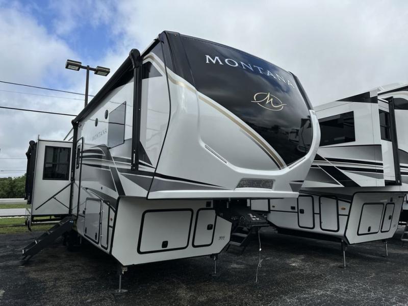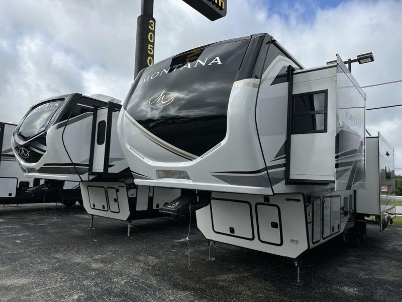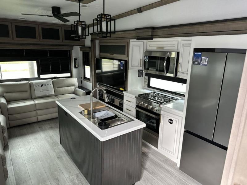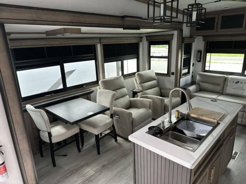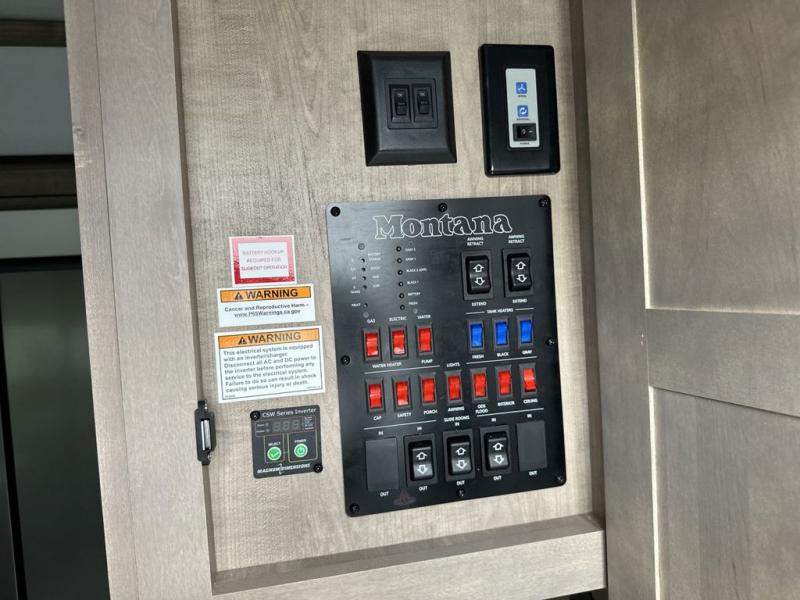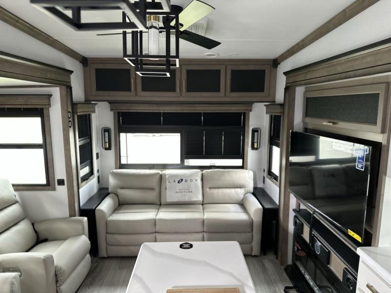 Enjoy luxury, innovation, and the outdoors in any one of Montana's finest fifth wheels. Each set the standard with exceptional features, and exciting factory installed options to provide you a great home on the road. Keystone's exclusive 12" I-beam chassis with z-frame technology has been reengineered to be stronger, lighter and built for "the long haul". A few other construction features you will appreciate include a Road Armor suspension, 2" thick, dual-layered lauan high gloss fiberglass sidewalls, a MaxTurn front cap with KeyShield automotive-grade paint, and a fully walkable roof with an Alpha seamless TPO membrane system. Each feature stylish interiors with two decor choices paired with beautiful hardwood cabinetry, vinyl flooring throughout, central vacuum, plus a La-Z-Boy furniture package for all-around comfort!