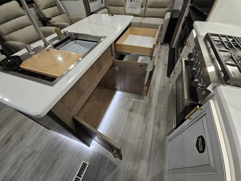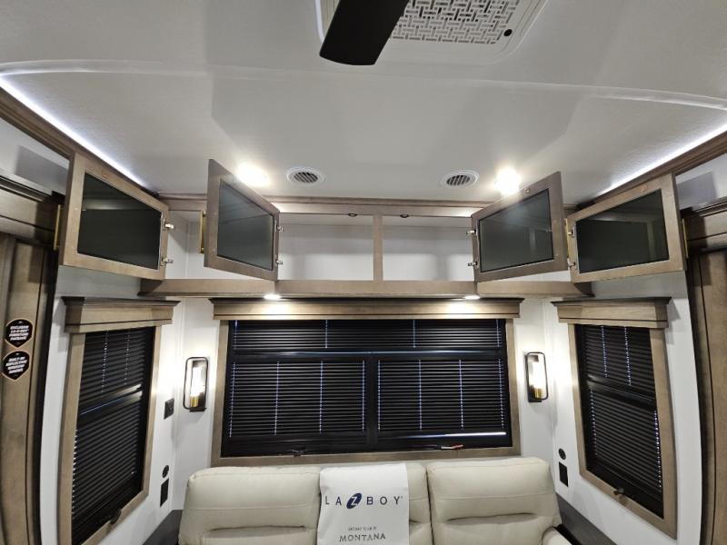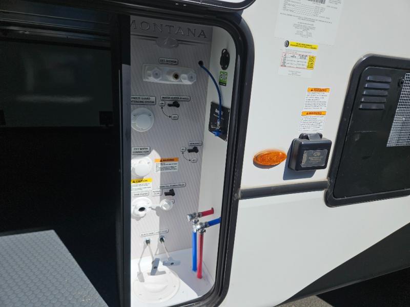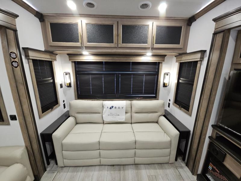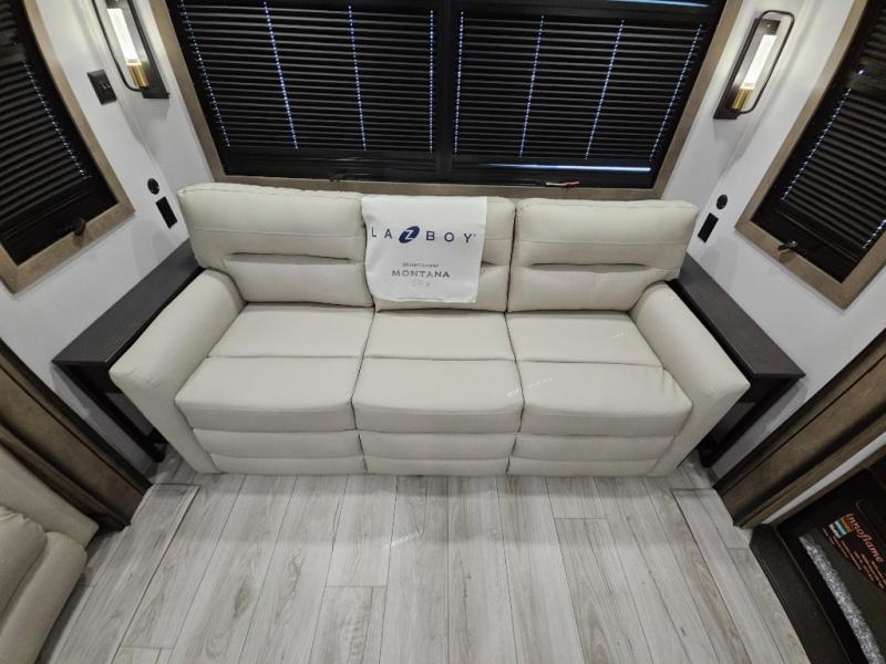 Enjoy luxury, innovation, and the outdoors in any one of Montana's finest fifth wheels. Each set the standard with exceptional features, and exciting factory installed options to provide you a great home on the road. Keystone's exclusive 12" I-beam chassis with z-frame technology has been reengineered to be stronger, lighter and built for "the long haul". A few other construction features you will appreciate include a Road Armor suspension, 2" thick, dual-layered lauan high gloss fiberglass sidewalls, a MaxTurn front cap with KeyShield automotive-grade paint, and a fully walkable roof with an Alpha seamless TPO membrane system. Each feature stylish interiors with two decor choices paired with beautiful hardwood cabinetry, vinyl flooring throughout, central vacuum, plus a La-Z-Boy furniture package for all-around comfort!