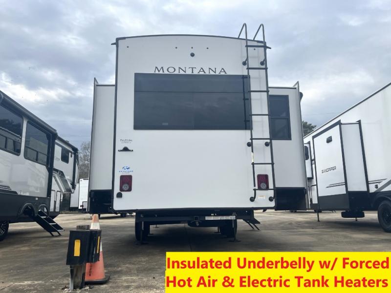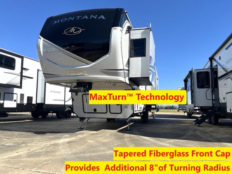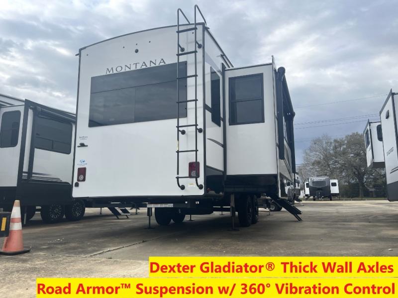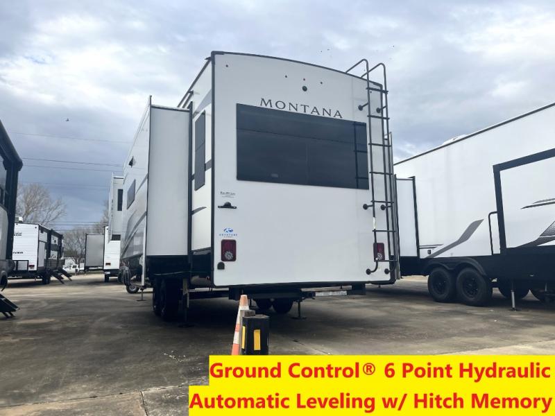 Enjoy luxury, innovation, and the outdoors in any one of Montana's finest fifth wheels. Each set the standard with exceptional features, and exciting factory installed options to provide you a great home on the road. Keystone's exclusive 12" I-beam chassis with z-frame technology has been reengineered to be stronger, lighter and built for "the long haul". A few other construction features you will appreciate include a Road Armor suspension, 2" thick, dual-layered lauan high gloss fiberglass sidewalls, a MaxTurn front cap with KeyShield automotive-grade paint, and a fully walkable roof with an Alpha seamless TPO membrane system. Each feature stylish interiors with two decor choices paired with beautiful hardwood cabinetry, vinyl flooring throughout, central vacuum, plus a La-Z-Boy furniture package for all-around comfort!