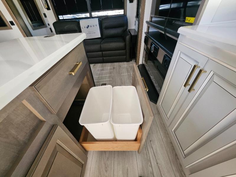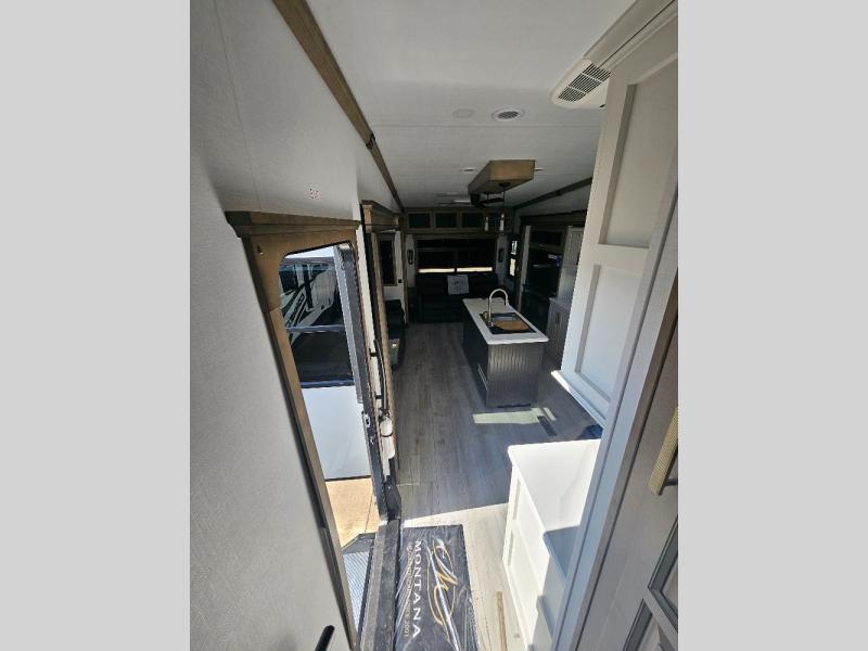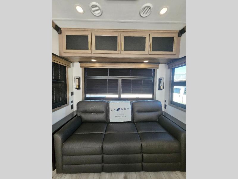 Enjoy luxury, innovation, and the outdoors in any one of Montana's finest fifth wheels. Each set the standard with exceptional features, and exciting factory installed options to provide you a great home on the road. Keystone's exclusive 12" I-beam chassis with z-frame technology has been reengineered to be stronger, lighter and built for "the long haul". A few other construction features you will appreciate include a Road Armor suspension, 2" thick, dual-layered lauan high gloss fiberglass sidewalls, a MaxTurn front cap with KeyShield automotive-grade paint, and a fully walkable roof with an Alpha seamless TPO membrane system. Each feature stylish interiors with two decor choices paired with beautiful hardwood cabinetry, vinyl flooring throughout, central vacuum, plus a La-Z-Boy furniture package for all-around comfort!