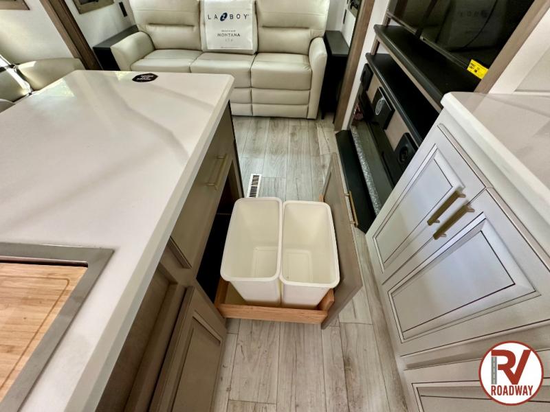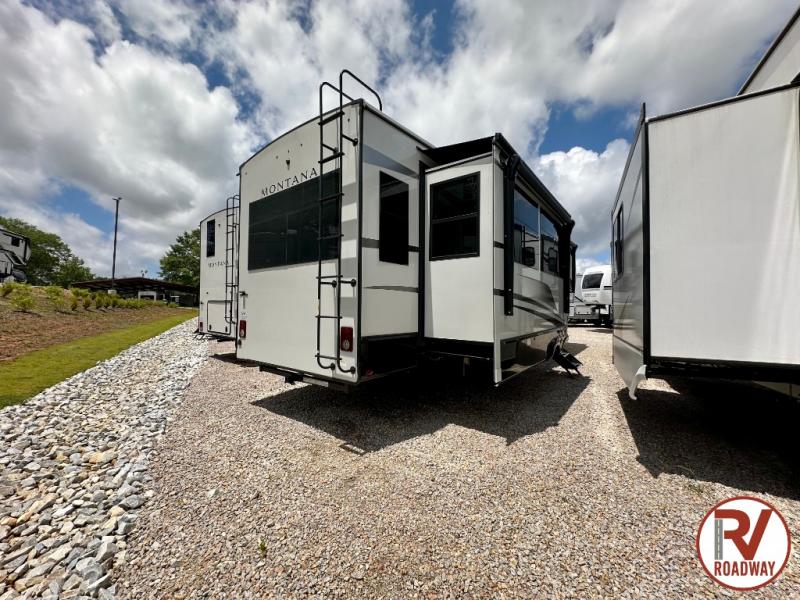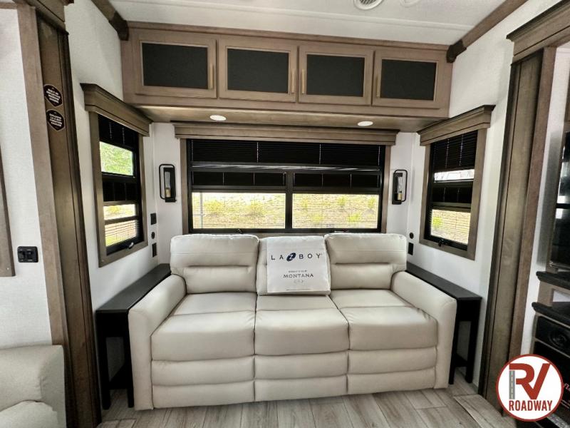 Enjoy luxury, innovation, and the outdoors in any one of Montana's finest fifth wheels. Each set the standard with exceptional features, and exciting factory installed options to provide you a great home on the road. Keystone's exclusive 12" I-beam chassis with z-frame technology has been reengineered to be stronger, lighter and built for "the long haul". A few other construction features you will appreciate include a Road Armor suspension, 2" thick, dual-layered lauan high gloss fiberglass sidewalls, a MaxTurn front cap with KeyShield automotive-grade paint, and a fully walkable roof with an Alpha seamless TPO membrane system. Each feature stylish interiors with two decor choices paired with beautiful hardwood cabinetry, vinyl flooring throughout, central vacuum, plus a La-Z-Boy furniture package for all-around comfort!