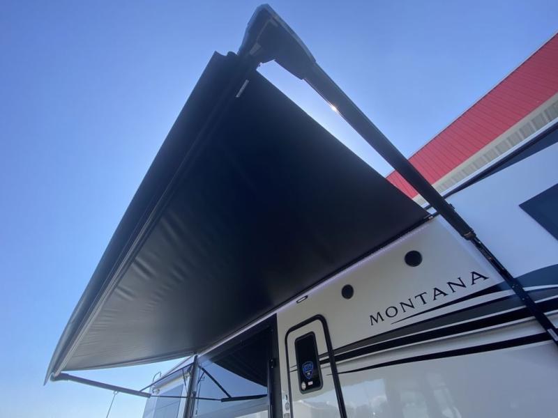 Enjoy luxury, innovation, and the outdoors in any one of Montana's finest fifth wheels. Each set the standard with exceptional features, and exciting factory installed options to provide you a great home on the road. Keystone's exclusive 12" I-beam chassis with z-frame technology has been reengineered to be stronger, lighter and built for "the long haul". A few other construction features you will appreciate include a Road Armor suspension, 2" thick, dual-layered lauan high gloss fiberglass sidewalls, a MaxTurn front cap with KeyShield automotive-grade paint, and a fully walkable roof with an Alpha seamless TPO membrane system. Each feature stylish interiors with two decor choices paired with beautiful hardwood cabinetry, vinyl flooring throughout, central vacuum, plus a La-Z-Boy furniture package for all-around comfort!