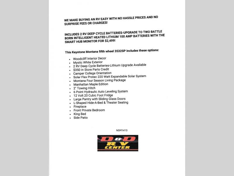 This Keystone Montana fifth wheel 3532SP includes these options: