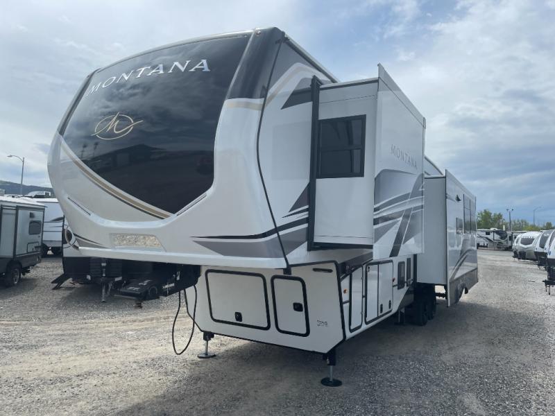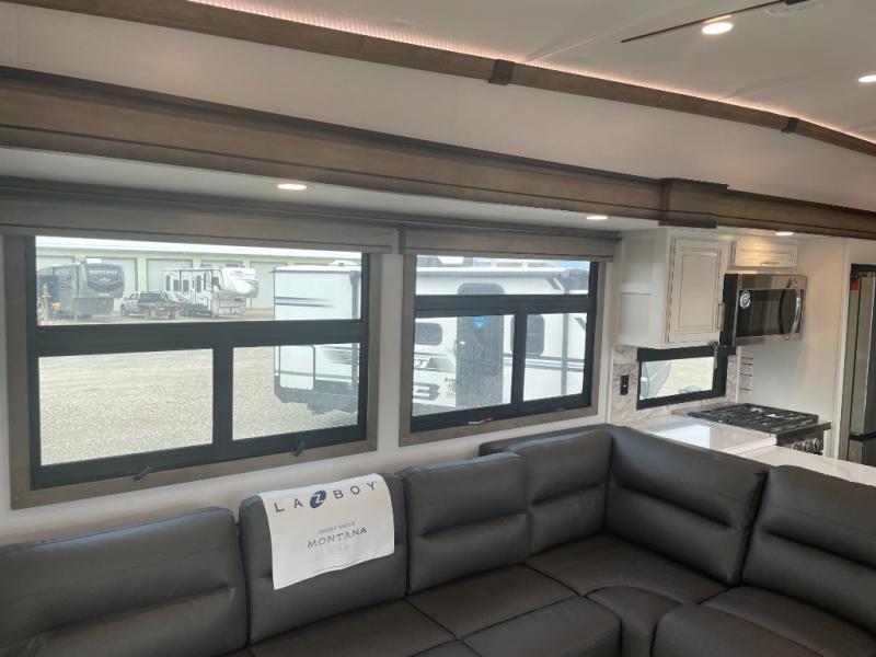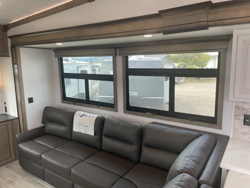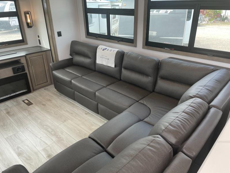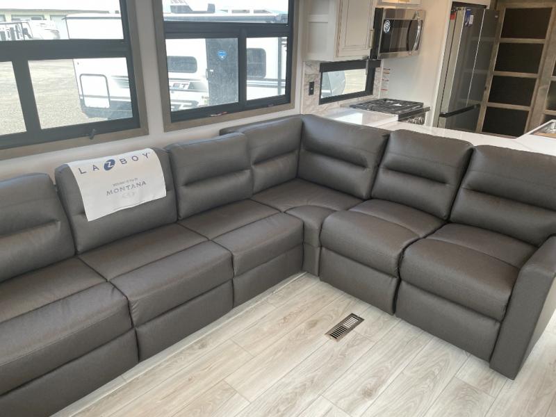 Enjoy luxury, innovation, and the outdoors in any one of Montana's finest fifth wheels. Each set the standard with exceptional features, and exciting factory installed options to provide you a great home on the road. Keystone's exclusive 12" I-beam chassis with z-frame technology has been reengineered to be stronger, lighter and built for "the long haul". A few other construction features you will appreciate include a Road Armor suspension, 2" thick, dual-layered lauan high gloss fiberglass sidewalls, a MaxTurn front cap with KeyShield automotive-grade paint, and a fully walkable roof with an Alpha seamless TPO membrane system. Each feature stylish interiors with two decor choices paired with beautiful hardwood cabinetry, vinyl flooring throughout, central vacuum, plus a La-Z-Boy furniture package for all-around comfort!