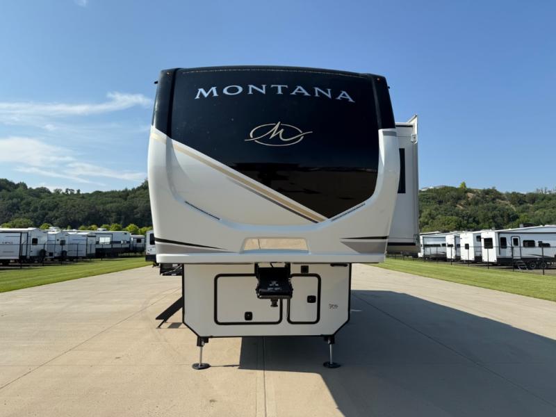 Enjoy luxury, innovation, and the outdoors in any one of Montana's finest fifth wheels. Each set the standard with exceptional features, and exciting factory installed options to provide you a great home on the road. Keystone's exclusive 12" I-beam chassis with z-frame technology has been reengineered to be stronger, lighter and built for "the long haul". A few other construction features you will appreciate include a Road Armor suspension, 2" thick, dual-layered lauan high gloss fiberglass sidewalls, a MaxTurn front cap with KeyShield automotive-grade paint, and a fully walkable roof with an Alpha seamless TPO membrane system. Each feature stylish interiors with two decor choices paired with beautiful hardwood cabinetry, vinyl flooring throughout, central vacuum, plus a La-Z-Boy furniture package for all-around comfort!